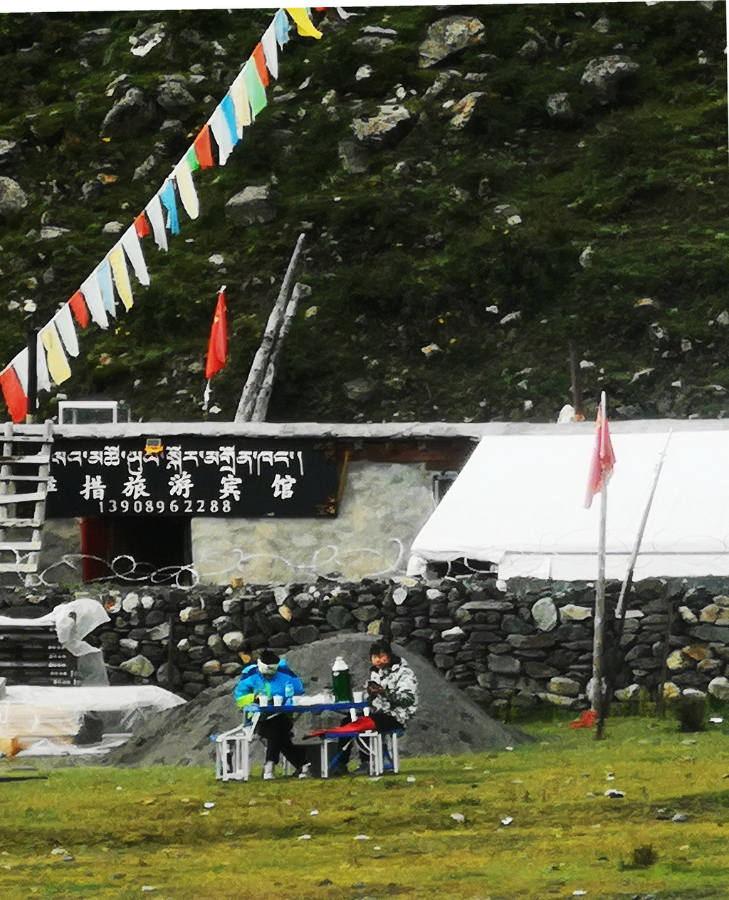 进景区后十八公里的路走了将近2小时,到达神山下已是下午四点了,于是决定湖边客栈留宿,按原设想返回索县或者比如是不可能了。萨措旅游宾馆(100/人·晚)【4700米】,孩子不占床不收钱,不过为了舒适,还是多交了100给娃单要了张铺位。景区门票成人150,娃没收钱。