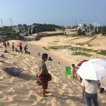 海岸沙漠”。这里位于皇帝山脚下,一大片沙滩绵延2000多米,纵深将近500米,雪白柔软的细沙垒出了一座陡峭的“城墙”,没有树木,没有绿草,行走其中,就像是置身于荒无人烟的沙漠。然而,近在咫尺的却是无边的大海,美丽海岸与大漠风光相互映衬,构成一幅罕见的图景。