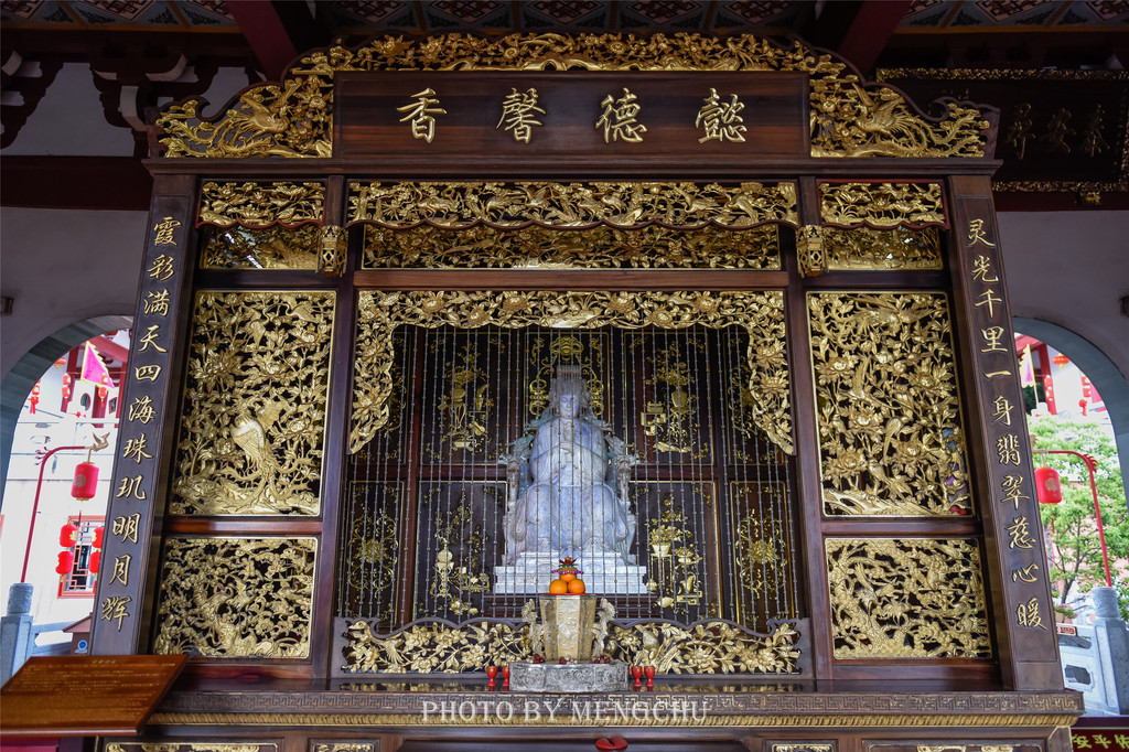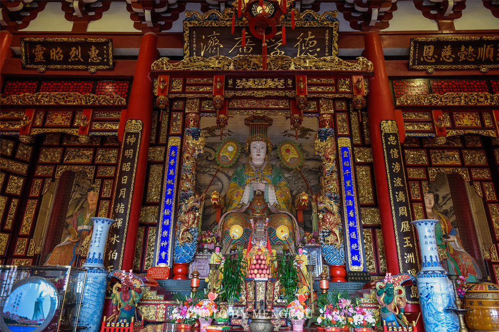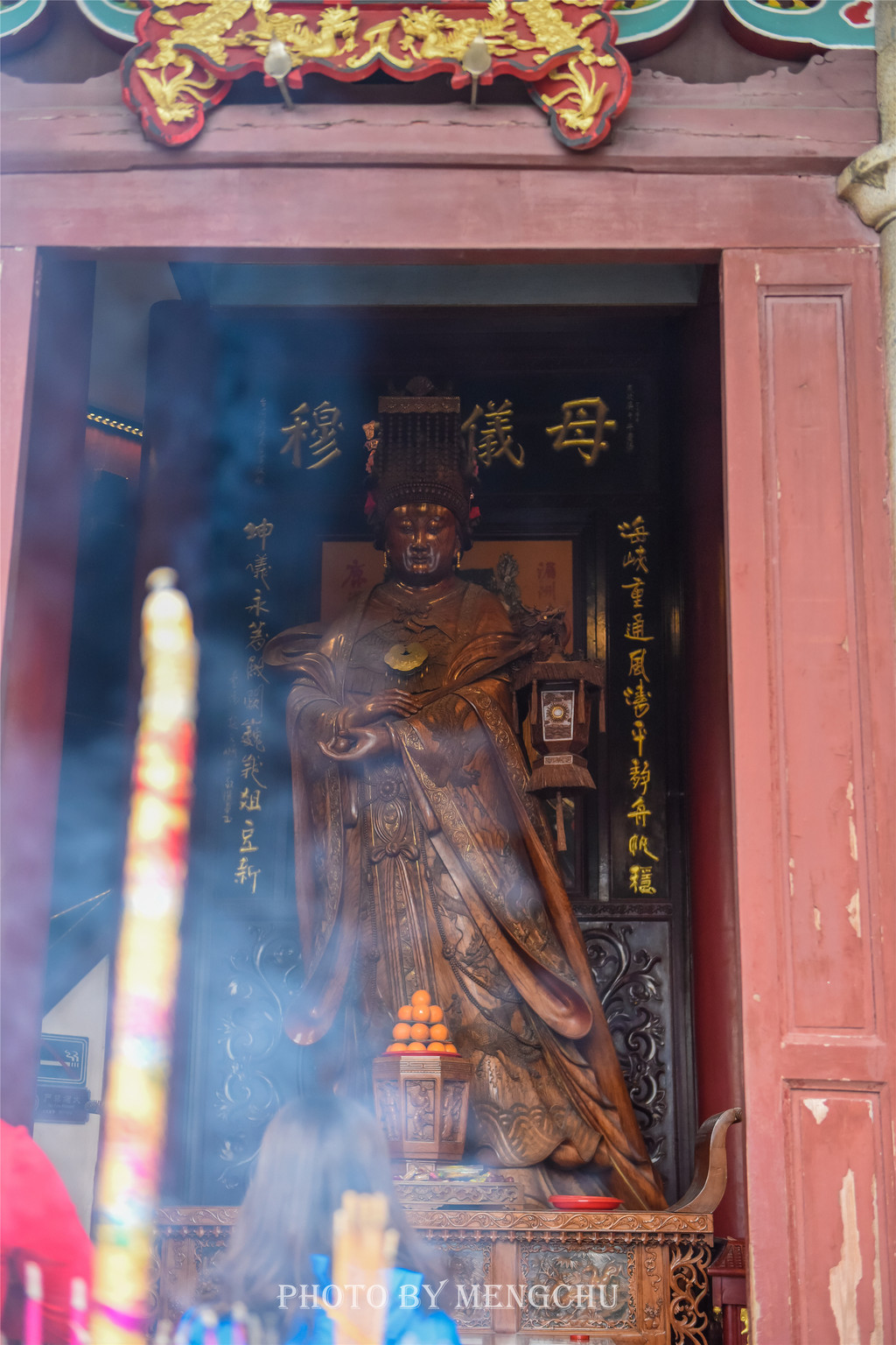 湄洲祖庙里其实供奉了大大小小的数尊妈祖像,有由整块黄花梨原木雕刻而成的4.22米高的全球最大红木妈祖像,有高3.23米、重323公斤、价值1亿多元人民币的全球最大最重的黄金妈祖像,还有高1.33米、重1.6吨、价值3个亿的全球最大翡翠妈祖像。虽然材质各有不同,但这些妈祖像的共同点就是都很美,妈祖平静的面容让人看起来便觉得内心一片柔和,仿佛世事的纷扰都不再了。