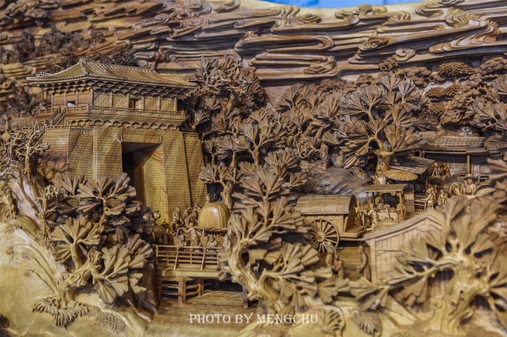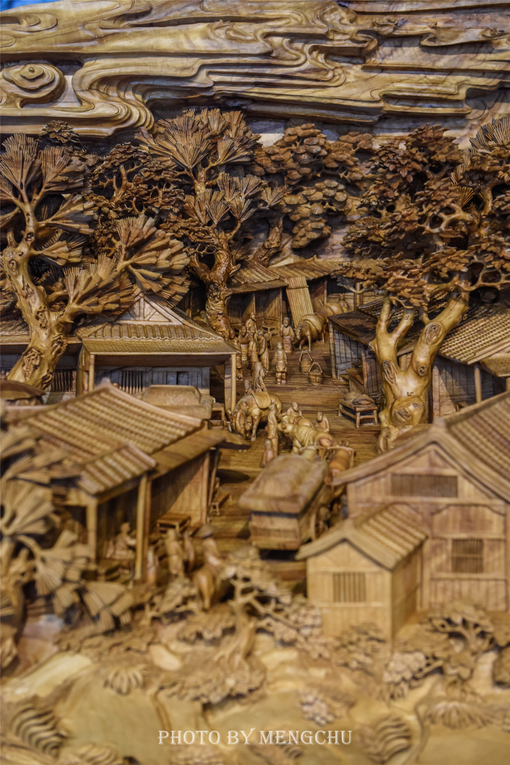 除了这些恢弘、大气、华美的木雕艺术巨作,还有一些充满了浓厚人文气息的写意木雕作品。不论是什么风格什么材质的作品,一雕一琢的方寸之间,都会给人带来惊喜,并流连忘返于其中。