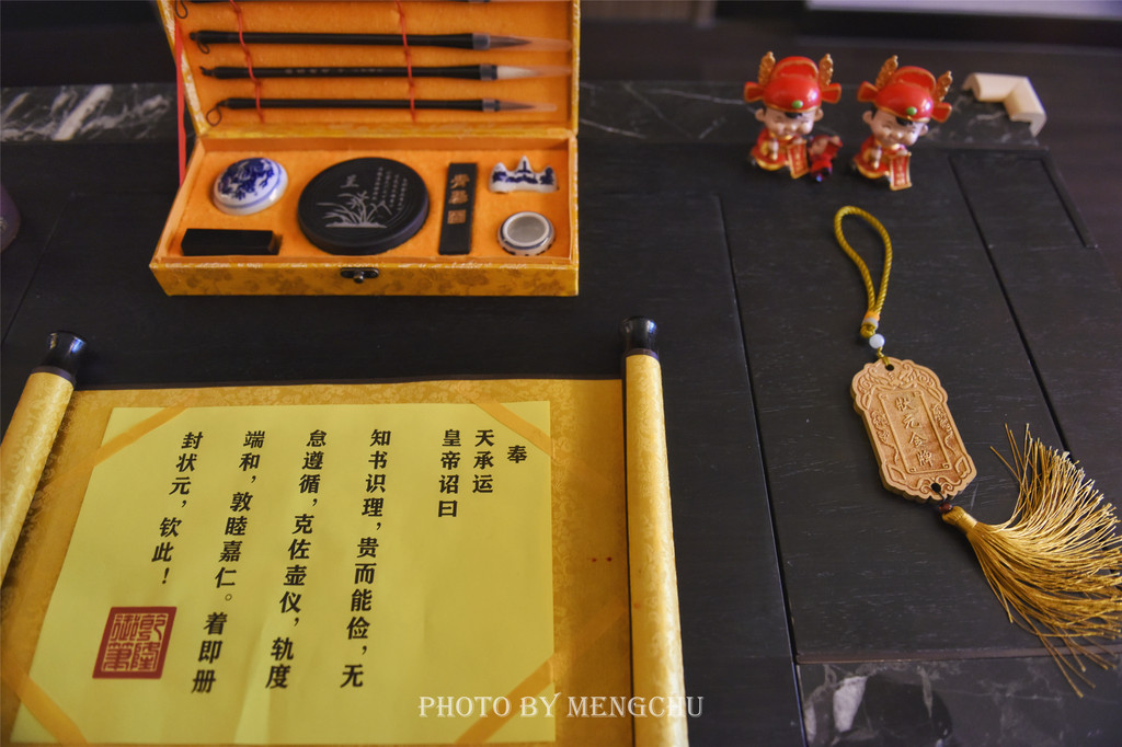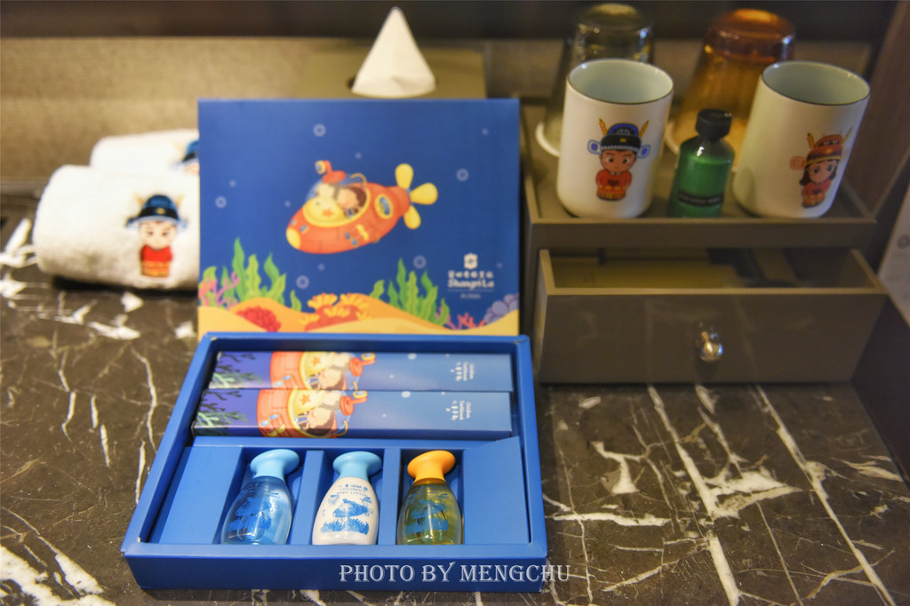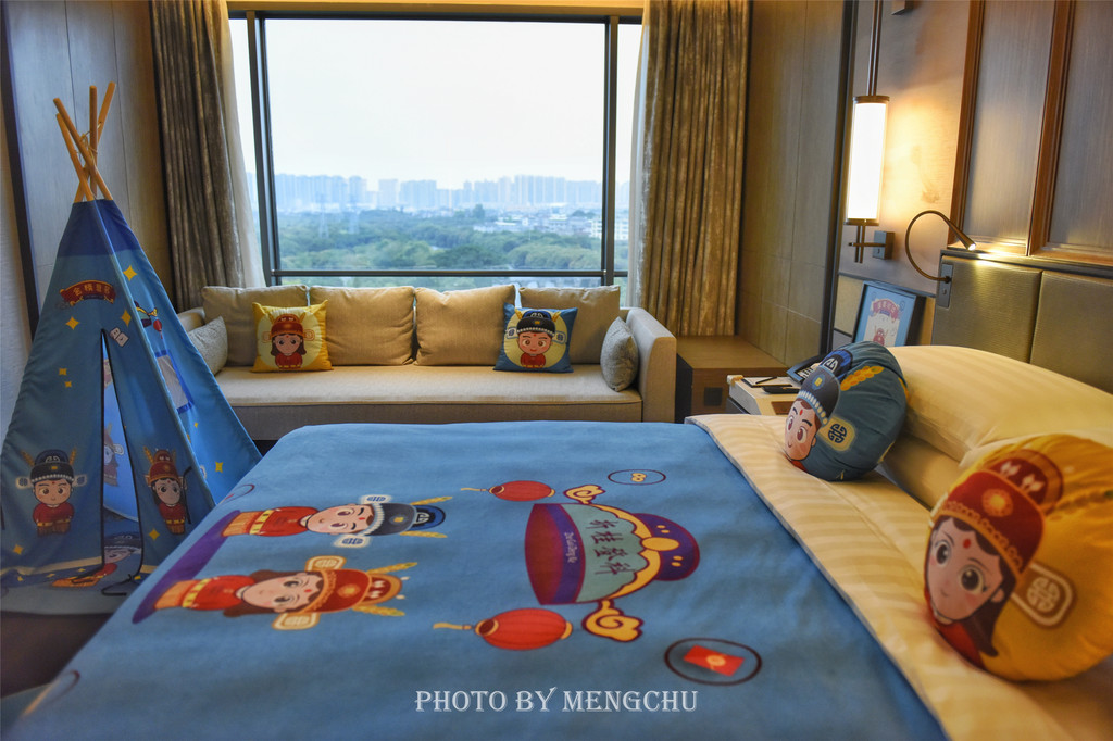 除此之外,莆田香格里拉更是结合当地辉煌的科举历史精心设计了“状元”主题房,各种“状元”卡通形象的儿童帐篷、寝具、洗漱用品等用具特别可爱,房间内还布置了象征中国科举文化的笔墨纸砚、折扇、状元帽、奏折等物品,既生动活泼又充满仪式感,带来状元及第、金榜题名的沉浸式入住体验。
