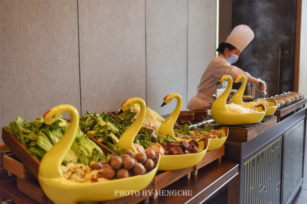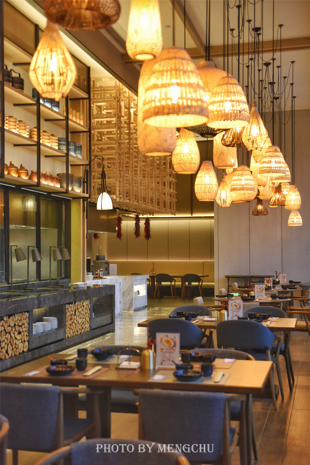 位于一楼的香乐园中餐厅,主打粤菜佳肴和莆田本地特色美馔,餐厅菜单既有不同菜系的经典名菜,也包含正宗本地美食和创新的福建佳肴,“海蛎煎”、“荔枝肉”、“南日鲍鱼”等莆田传统美食都非常值得期待。香乐园中餐厅在设计上亦体现其海纳百川的包容与开放,一楼入口处即以“百家碗”装饰墙面,与莆田“流水席”的传统相契合。餐厅大厅设有一组以莆田打渔工具为灵感设计的藤制灯笼形吊灯,纵列排开,大气却不失温馨。