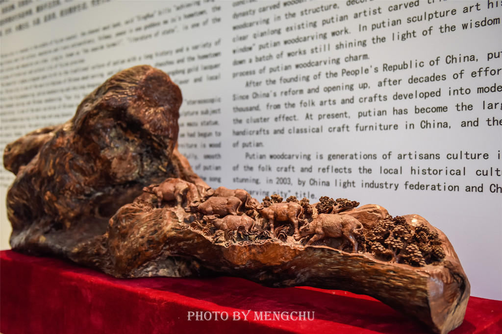 莆田市博物馆入口处令人叹为观止的木雕作品,出自于木雕大师郑春晖之手。如若还想参观更多的木雕艺术品,不妨前往现今最大的民间木雕博物馆,也是郑老师的个人工作室——春晖木雕艺术馆。