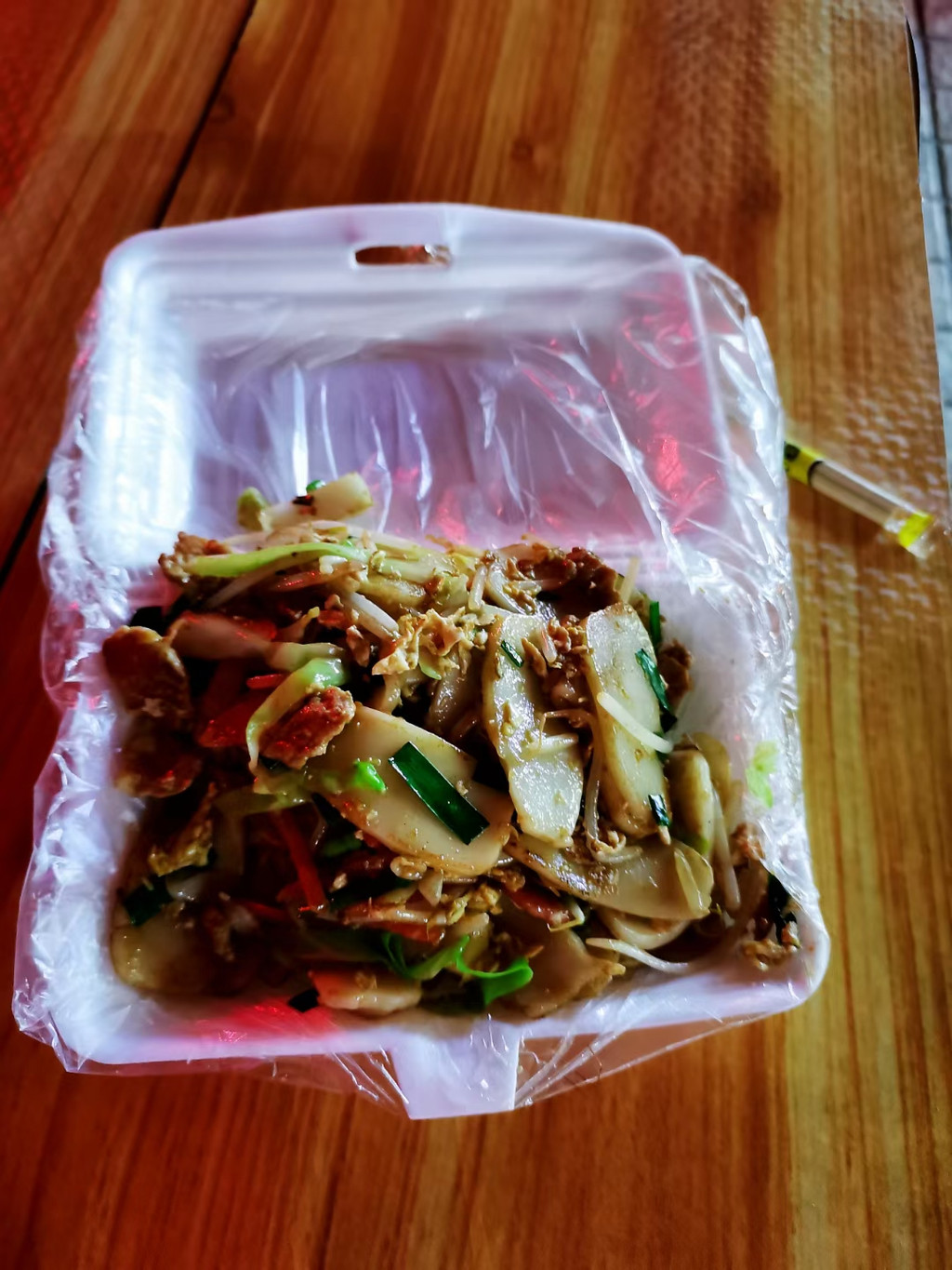 到了文甲码头坐16路回到住处,然后去中医院附近的夜市一条街觅食,找了一家炒粉炒饭的摊子,点了一份炒白粿(CNY12),味道很好,从头逛到尾没找到想吃的莆田当地的小吃,最后吃了碗四果汤(CNY10)就回去了。