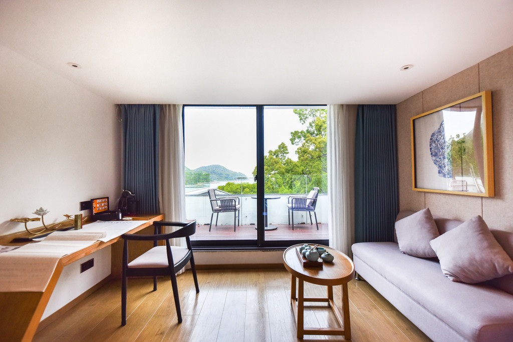 酒店拥有97间新中式现代禅意主题客房,分处两个院落之中,无论是古木园景,或是泳池院景,所得其乐,无法言语。清晨,普陀十二景“朝阳涌日”之时,遥听晨钟之声,在这瑜伽打坐,吐故纳新,凝神静气,定可尽享天地气息。