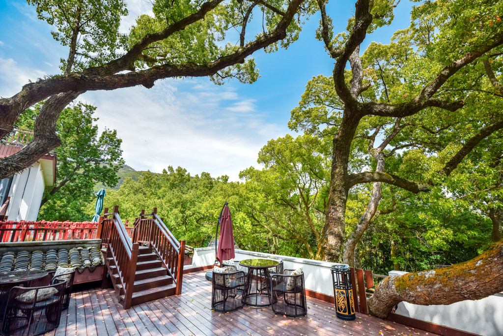 普陀山开元观堂以“禅文化”主题,以“礼佛、养心、雅致”为文化核心,打造禅意休闲的独家休闲度假胜地。这一点,我感受颇深。本就是地处禅意之地,又是百年树林之内。与佛教寺庙选址“人与自然和谐共存”理念一致。经过大堂,院内“造景”也是高低错落有层次,上上下下,有三处庭院海景树荫露台,以供宾客小憩;与自然共处一境,遥听佛教禅音,很是清幽。绿意葱茏,蓬莱密境,别无城事烦扰,可观自在。