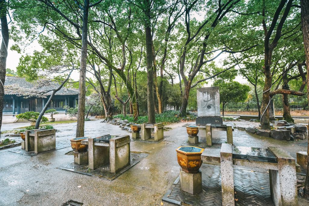 几步之遥,从台门一进二进三进,辗转进入了内院——百草园。百草园原为周家新台门族人所共有的一个荒芜的菜园。鲁迅在散文《从百草园到三味书屋》一文中回忆说:“我家的后面有个很大的园,相传叫百草园。……其中似乎确凿只有一些野草;但那时却是我的乐园。”百草园内的泥墙根、菜畦、石井栏、皂荚树、桑椹等等。