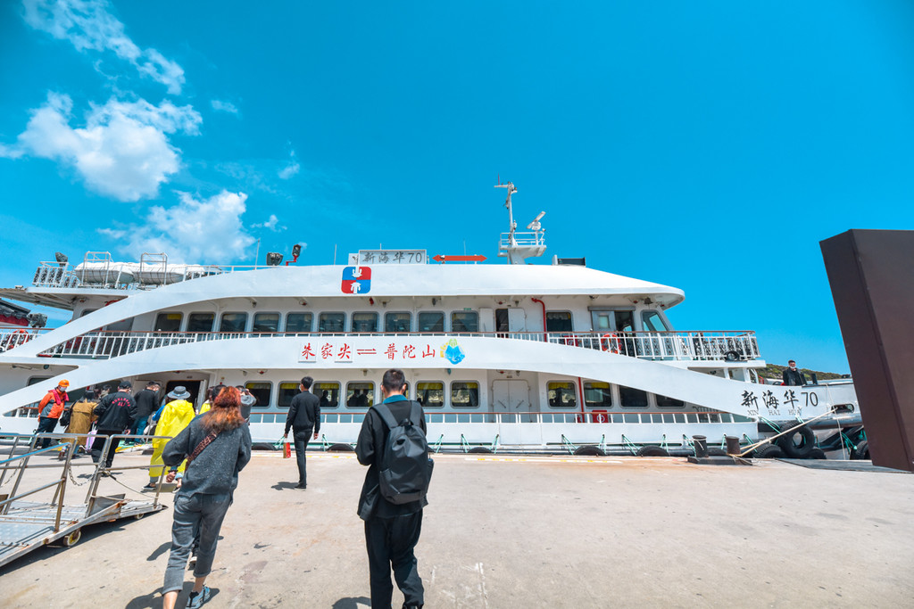 从朱家尖码头坐船至普陀山景区,大约15分钟;抵达岛上,可乘坐岛上景区巴士,环游岛上各处佛教寺院、景点。巴士连接了,南海观音大佛(紫竹林)、大乘庵、法雨禅寺、普济禅寺等景点。