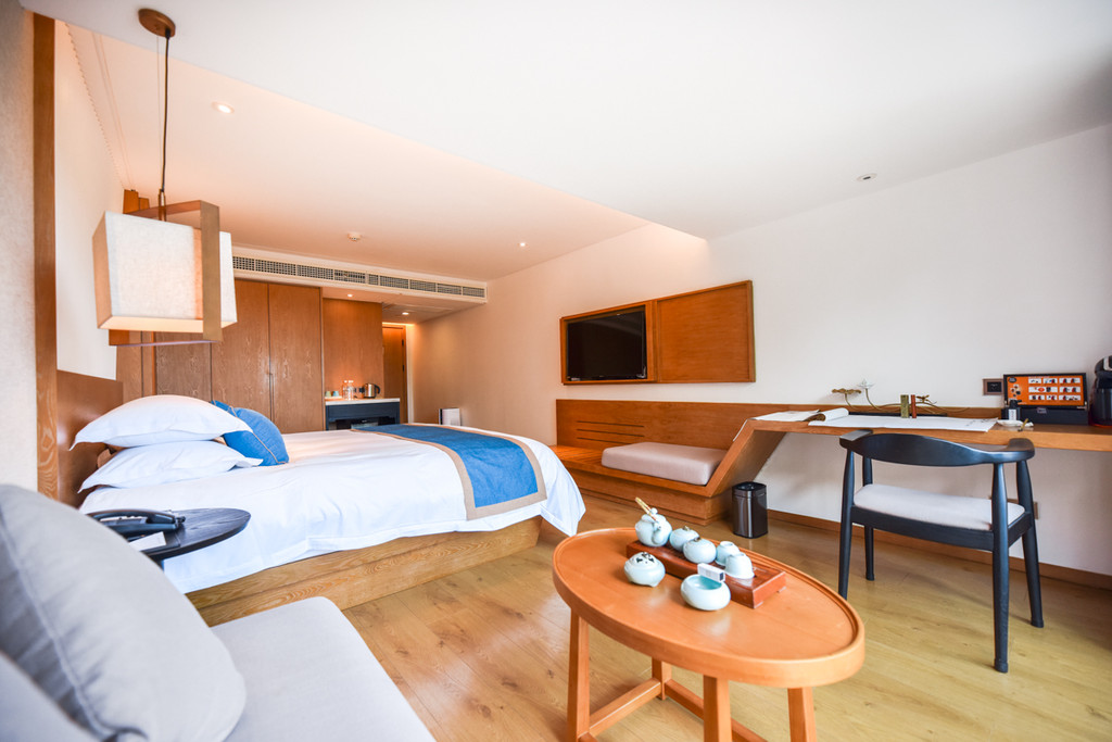 有幸在这特殊时期,入住了这间海景、院景视野最佳的客房——法雨海景露台大床房。采光通风极佳——一个阳台,外加一处海景露台,配有鸟巢吊椅,既得山水度假之乐,又有禅修静心之感。