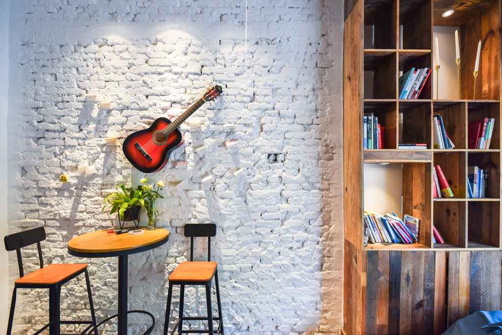从酒吧式的前台,到文艺青年范的音乐角、咖啡桌,再到露天小院、绿植拥簇,细节上确实如他所言,对民宿的呵护备至,让住客感到温暖如家。无论是青年男女夏夜庆生,或是亲子家庭在这聚餐,亦或是亲友同事在此小憩,都不乏一种感觉——惬意,自在!