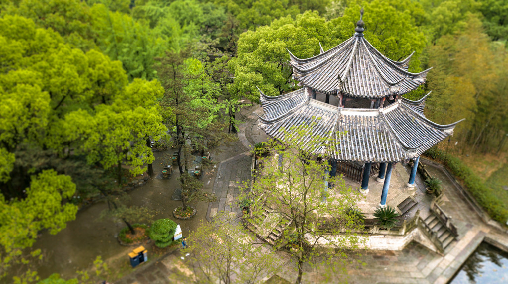 兰亭,地处绍兴城西南25华里的兰渚山下,与禹陵、东湖并立为绍兴市郊三大著名风景点之一,一直因书法名作《兰亭集序》而名闻海内外;近十几年中,因“兰亭书法节”的持续举办而声名更盛。航拍视角下,兰亭景区,掩映在绿野秘境里,林间溪水潺潺,一泊池塘,宛如天开。