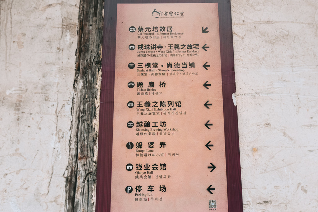 戒珠寺之后的蕺山书院曾是明代著名儒学大师刘宗周讲学之地,也是蕺山学派的发祥地。如果从寺院之东走过,便可看见书圣故里的牌坊,但是这就结束了吗?不,这一处历史街区如正方形,西入东出,也是只是管中窥豹。继续返回,在戒珠寺前,反向进入。还有王羲之陈列馆、题扇桥、躲婆巷没看到呢。