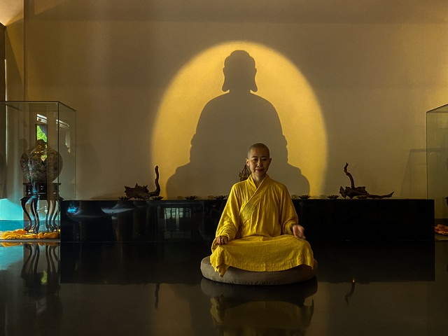 怀揣着好奇心,走进如易阁。本以为,这里应该是个小小的禅院或者是佛文化用品商店。结果,我大错特错!如易阁是国际佛教文化交流中心,是著名的禅修道场。除了设有诵经禅堂、禅茶室,还有各式客房、素食餐厅、佛教精品商场,甚至在地下室还有一座观音文化陈列馆。
