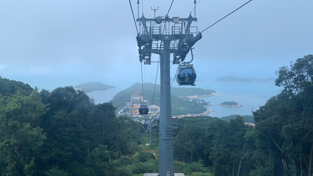 缆车附近有一座面海的塔,拾阶而上,实现很开阔
