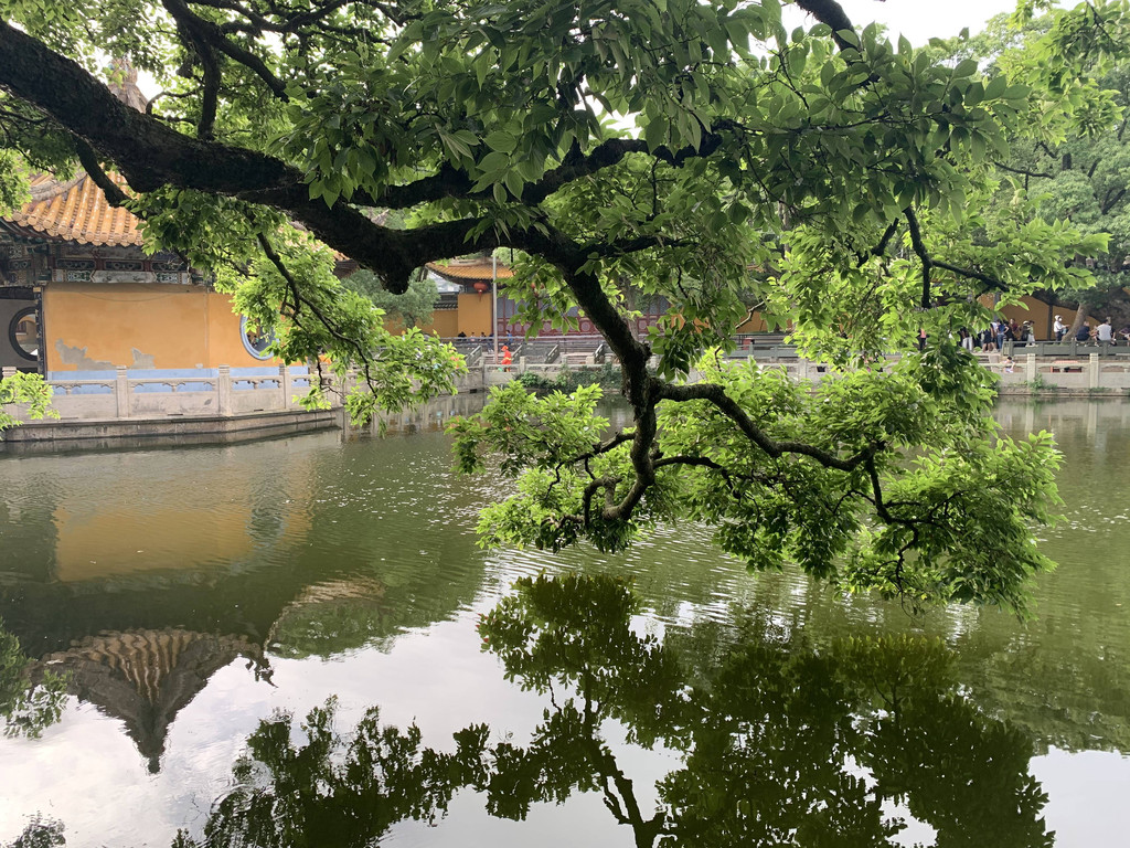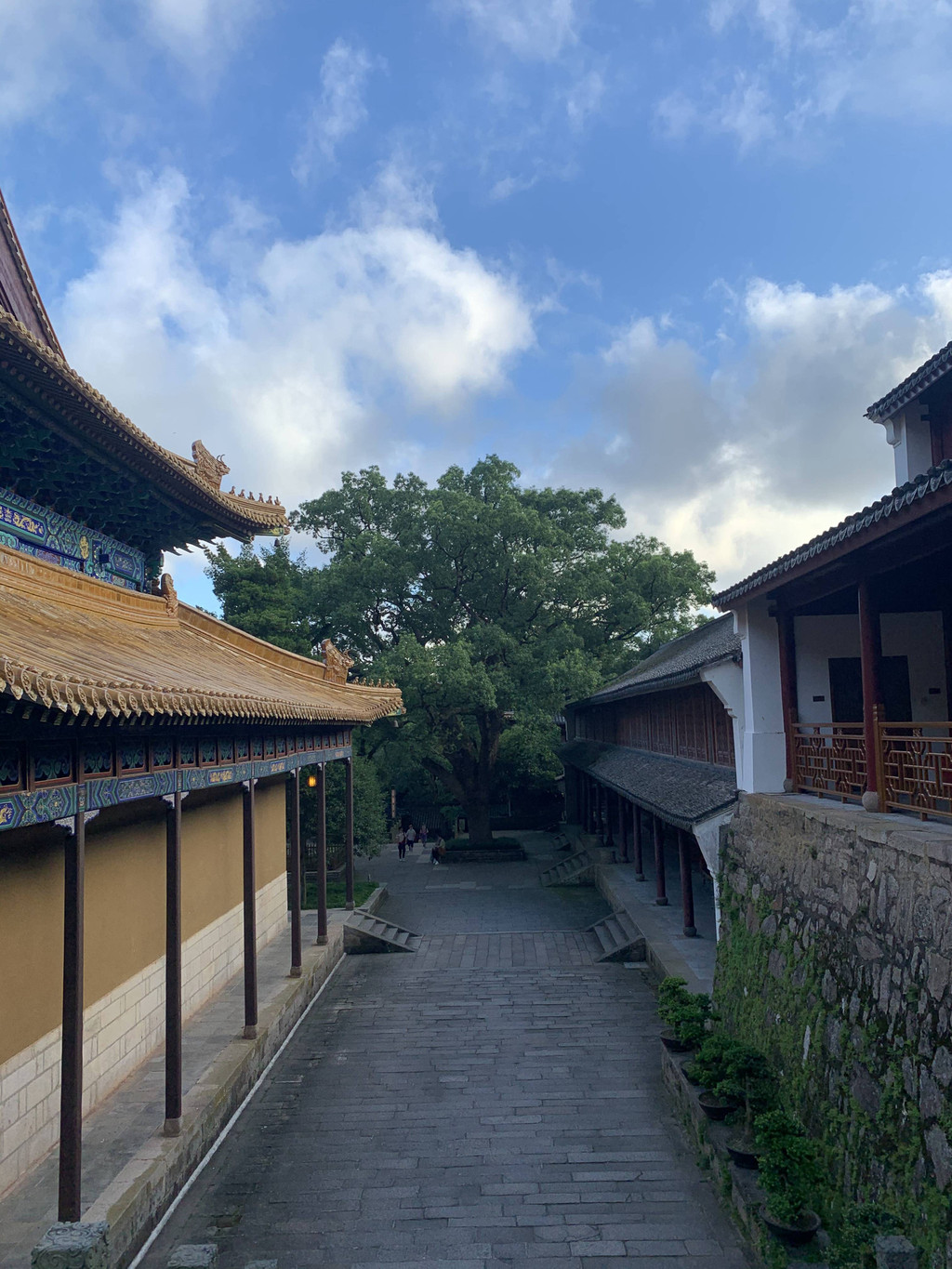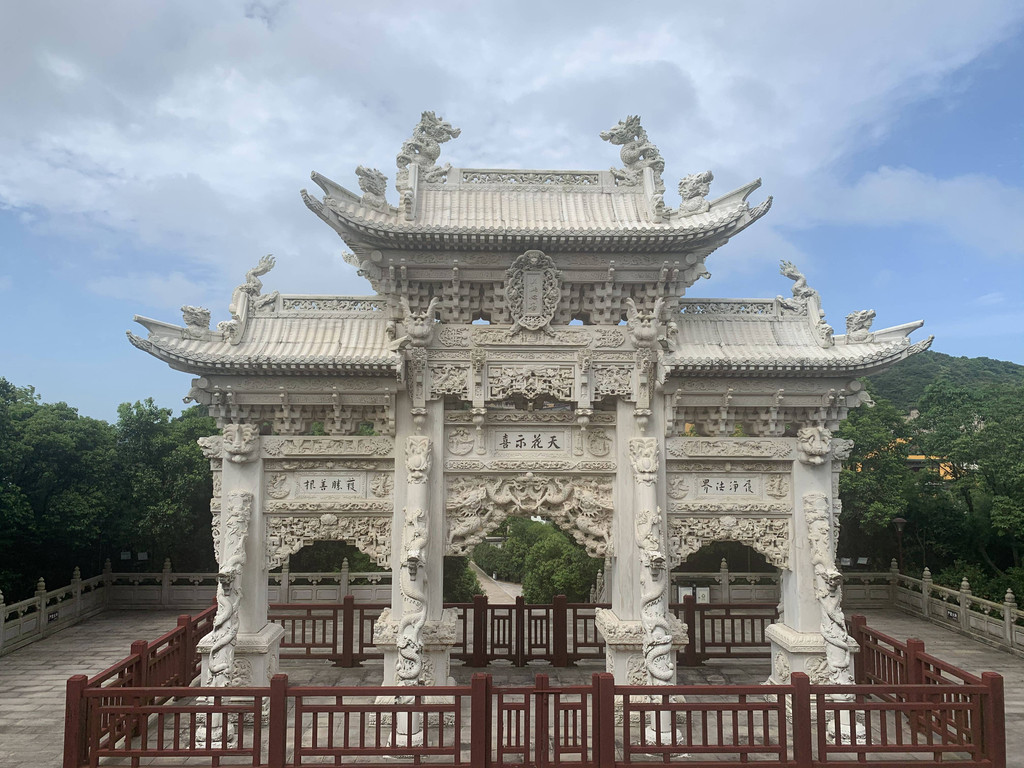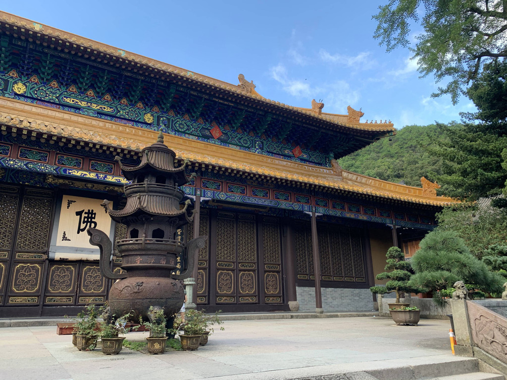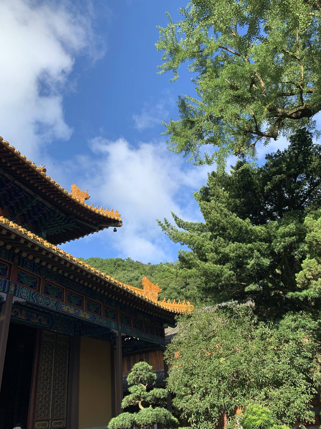 雷迪森就在法雨寺旁边,步行几分钟,非常方便,可以赶早、或者傍晚错开游客最多的时候去参拜;一直觉得法雨寺很美,依山取势,寺院山门的几株古树尤其古朴壮观,院内有仿北京的九龙壁,还有九龙殿,竭尽工匠智慧和美感,据说建造法雨寺时,拆金陵城内琉璃瓦12万张,仿明故宫而建,大殿台前三面石栏板上分刻着二十四行孝图,取自元代郭居敬编撰的古今二十四孝子的故事,时刻提醒众人孝为先;远处是千步沙海滩,正如古诗所述“树色秋擎书,钟声浪答回”,意境悠扬。这次去,经历了上海的雨季,而这里晴空朗朗,映衬着法雨寺的琉璃瓦,非常美好。