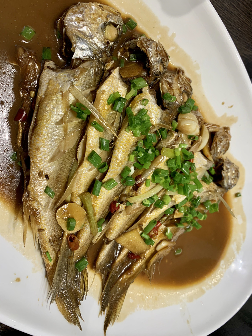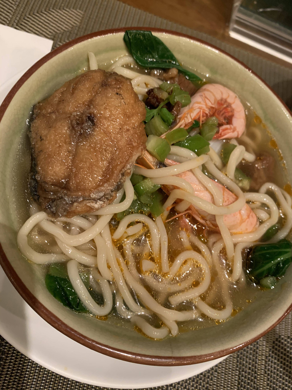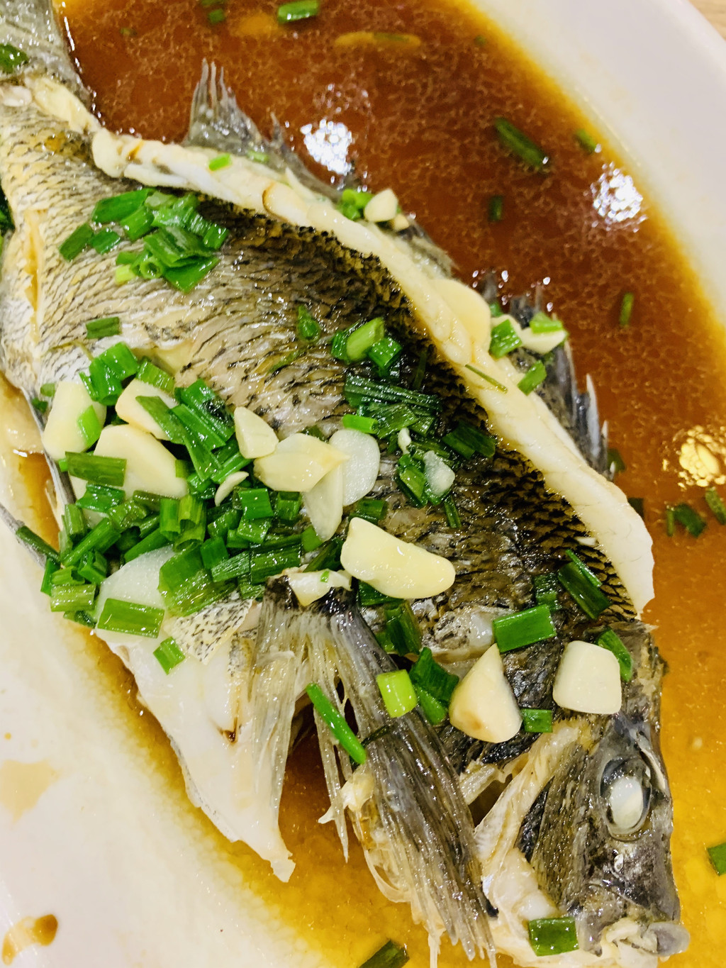 一家餐厅在过了隧道的当地居民区一个酒店一层,旁边就是一个小巴站,可以到达码头再换去通往最终目的地的巴士;这家的海鲈鱼做得非常好吃,虾也非常干净,没有黑黑的虾线,肉Q弹甘甜,稍微用一点佐料就可以了。问了一下,酒店早餐价格也很亲民,从酒店到餐厅感觉整体性价比还是不错的,我记得第一次来普陀山体验过民宿,可能也是这附近吧,记得当时周围有农田,还走了一条长长的路走到码头,现在整体规划得非常优秀了;过来吃饭时候,周围人来人往很热闹,八九点吃完晚餐走在民宅楼之间的星空下,周围逐渐安静了,感觉很宁和安全,店里人还出来看看我有没有顺利上车,真的很贴心。