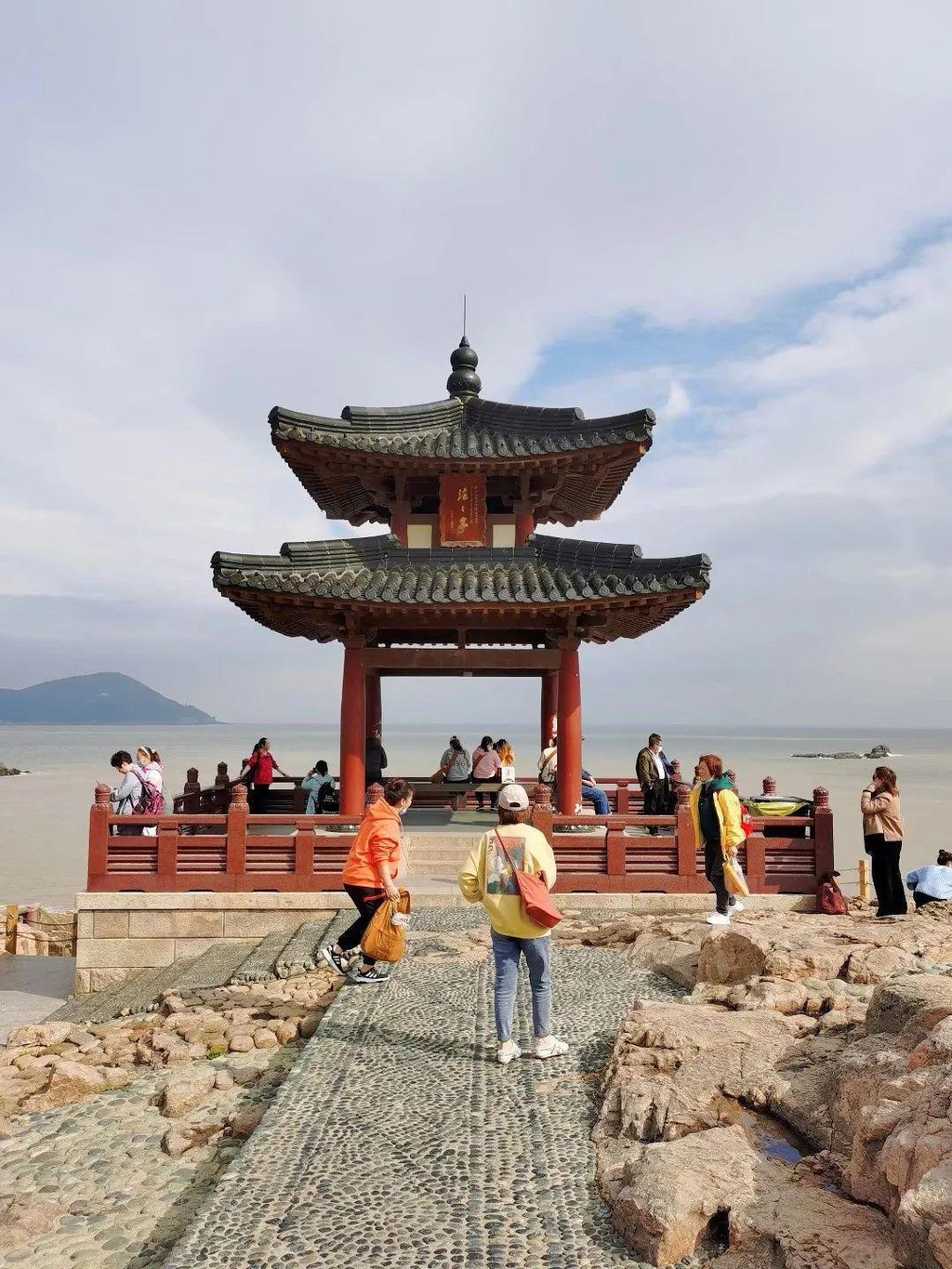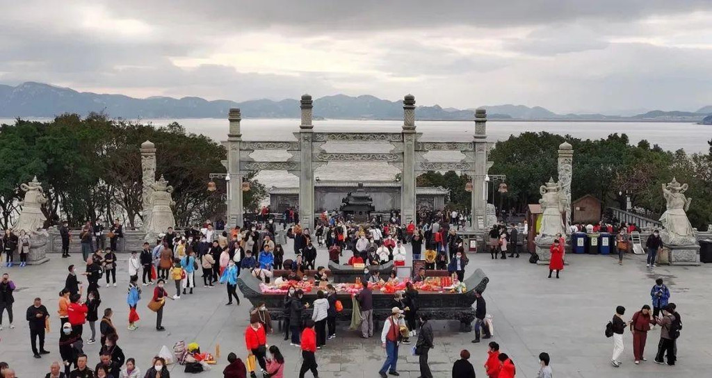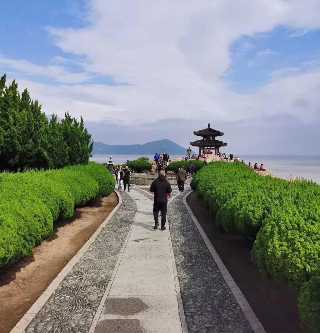 两个小时后到达朱家尖港口,坐上了前往普陀山的客轮,普陀岛近在眼前,船行十来分钟抵达岛上,一天半的普陀山之旅就此开启。
