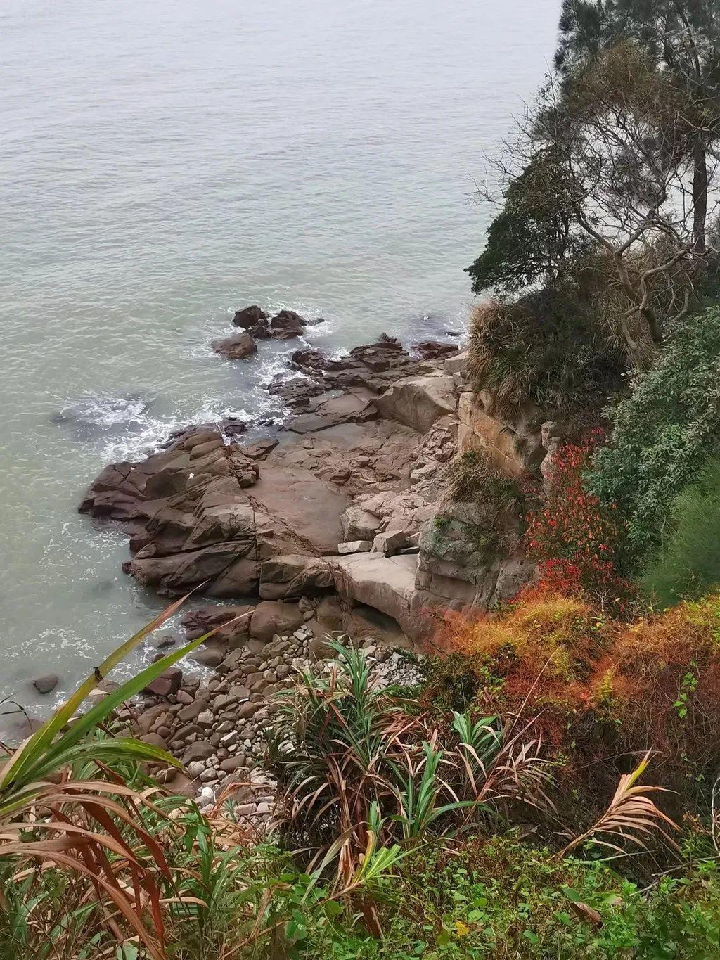 出禅林,向东侧海边前行,看到绿草翠木掩映中的建筑就是不肯去观音院了,不过海边还有一些引人入胜的景观,我们先去那里看看。