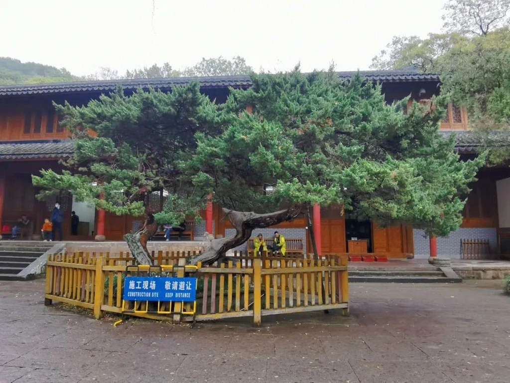 寺院大雄宝殿一侧有两株圆柏,雌雄异株,树形优美,干枝虬曲,堪为独景,郭沫若曾题词“龙凤古柏”。