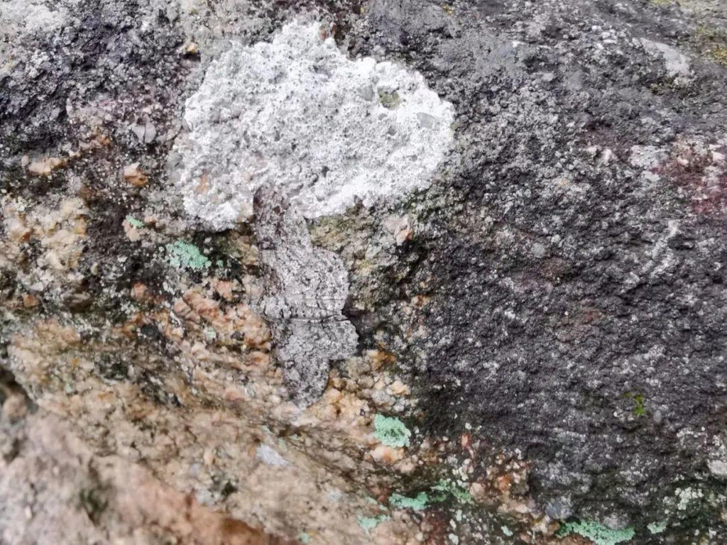 上山的过程中忽见一只飞蛾落于岩石,走近细看却不见踪影,我来了兴致,怎么会凭空消失呢?又仔细看了一会儿,原来匍匐在灰白的石面上,依靠保护色隐藏了自己。一个小插曲。