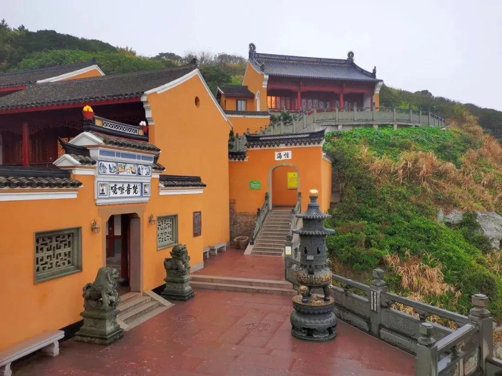 从法雨寺沿香云山香道往北而行,来到了佛顶山景区,这是普陀山海拔最高的景区,三大寺之一的慧济禅寺就位于这里。