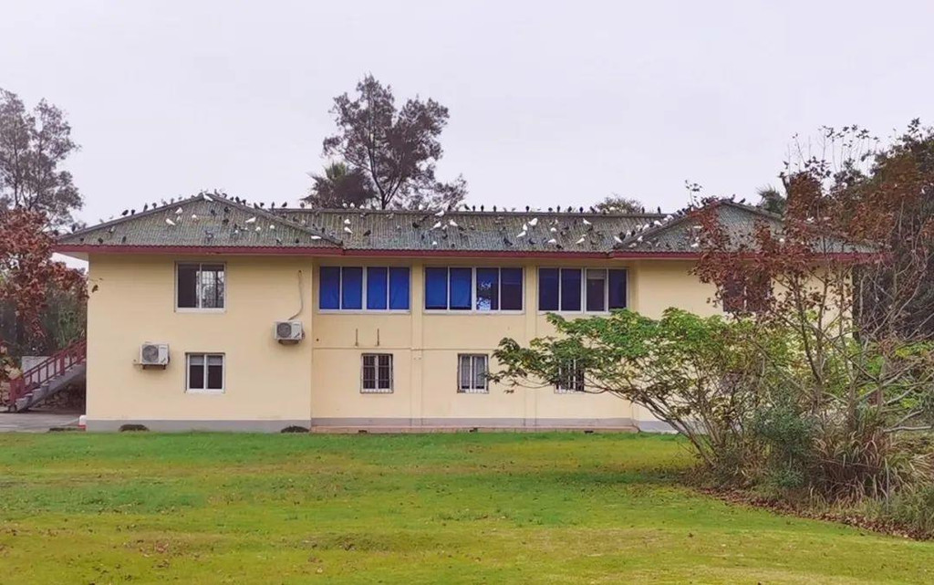 池畔有一处草坪,是鸽子的乐园,一会儿飞上屋顶,一会儿在草坪散步,十分热闹。