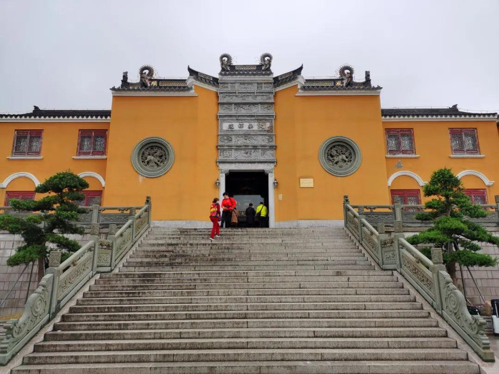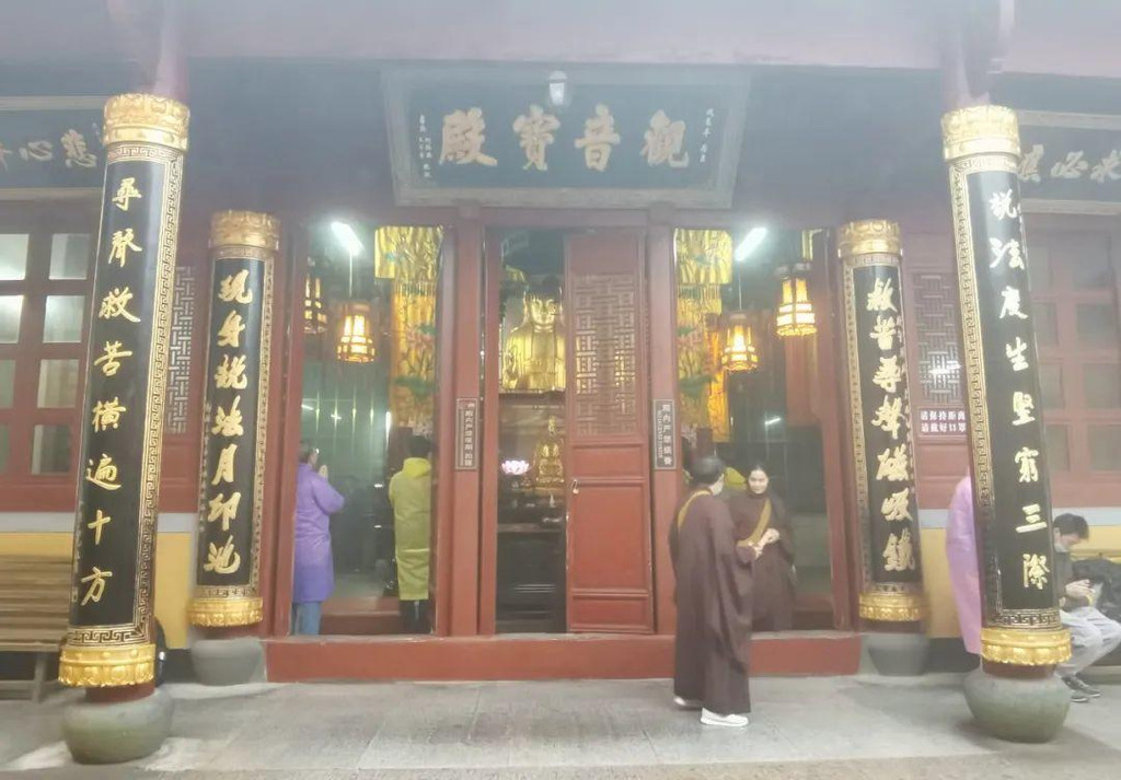 此处观音殿内有从南京明代宫殿迁来的九龙藻井和琉璃瓦,是普陀山的宝贝。