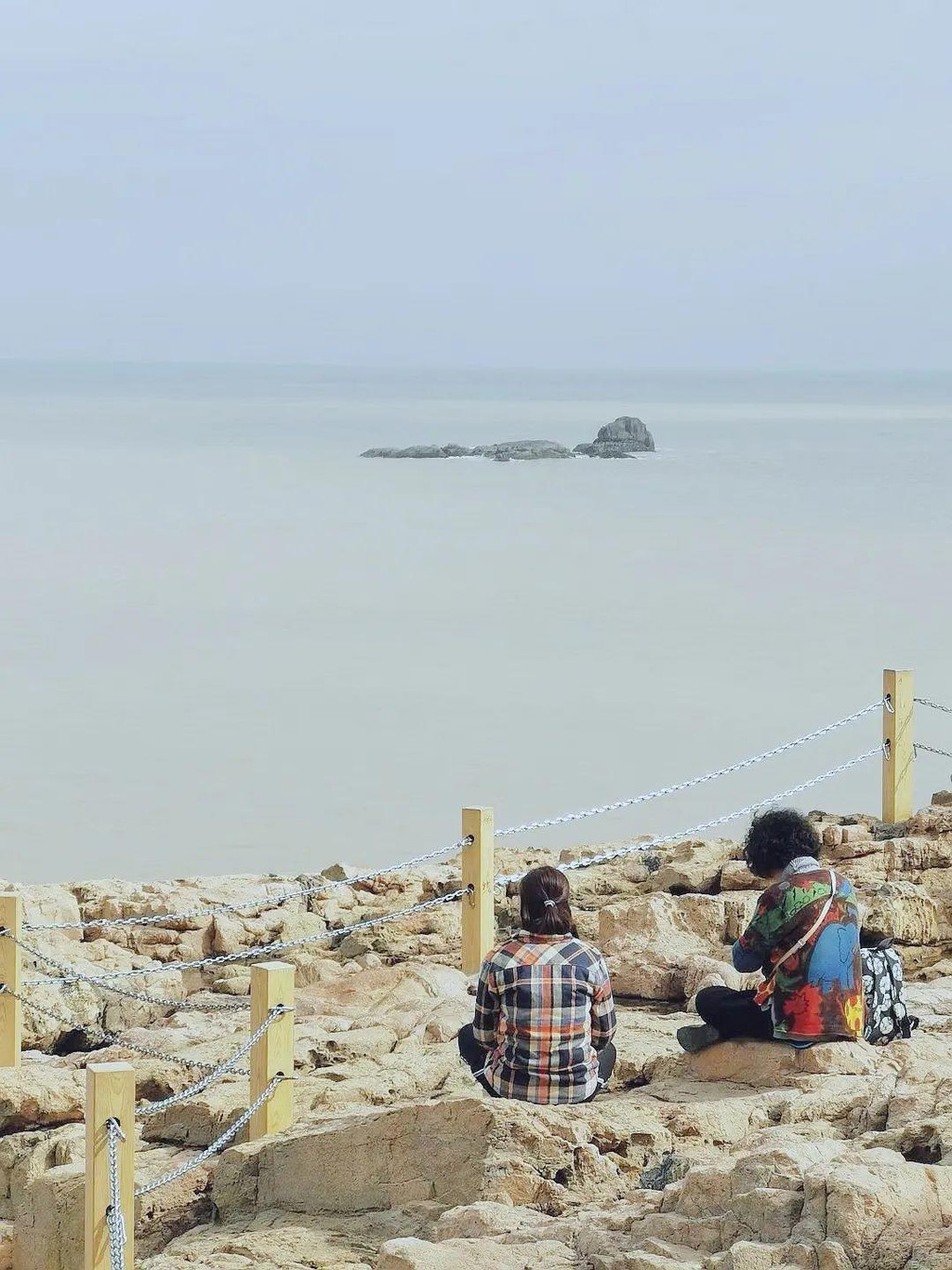 澹澹亭下的竦峙岩石上,有不少打坐的信徒,任其身边人来人往,耳边潮音起伏,他们自岿然不动,神如止水。其实那天阳光强烈,在裸露的岩石上坐一小会儿已属不易,他们能坐上一大会儿,你道是为何?
