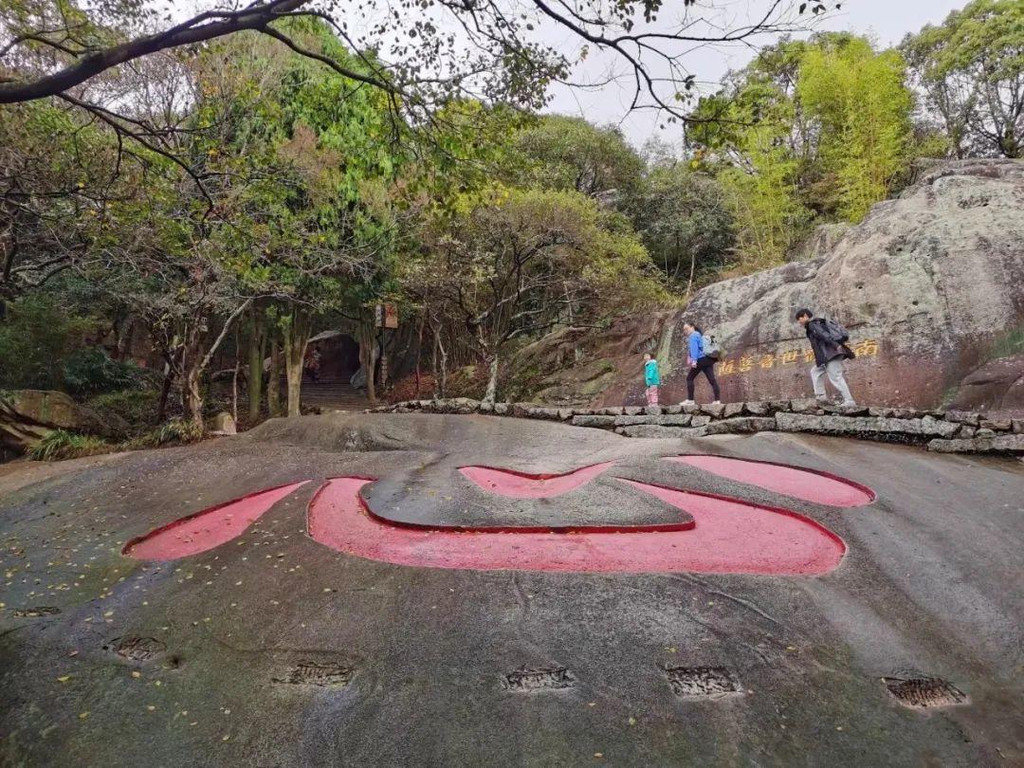 最后来到了著名的“心”字石,这是可在巨石上的一个巨大的“心”字,有多大,对比下图路过的行人就知道了。