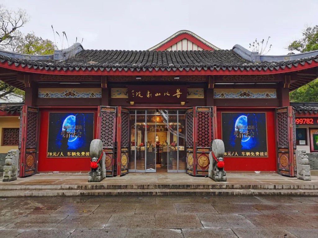 穿过龙沙隧道,首先看到的是普陀山剧院,这里每日都会上演大型全景舞台剧《观世音》,我没有看,但据看过的人说视觉震撼,有身临佛界的感觉。
