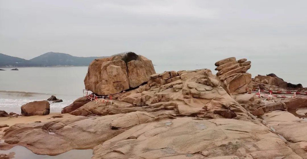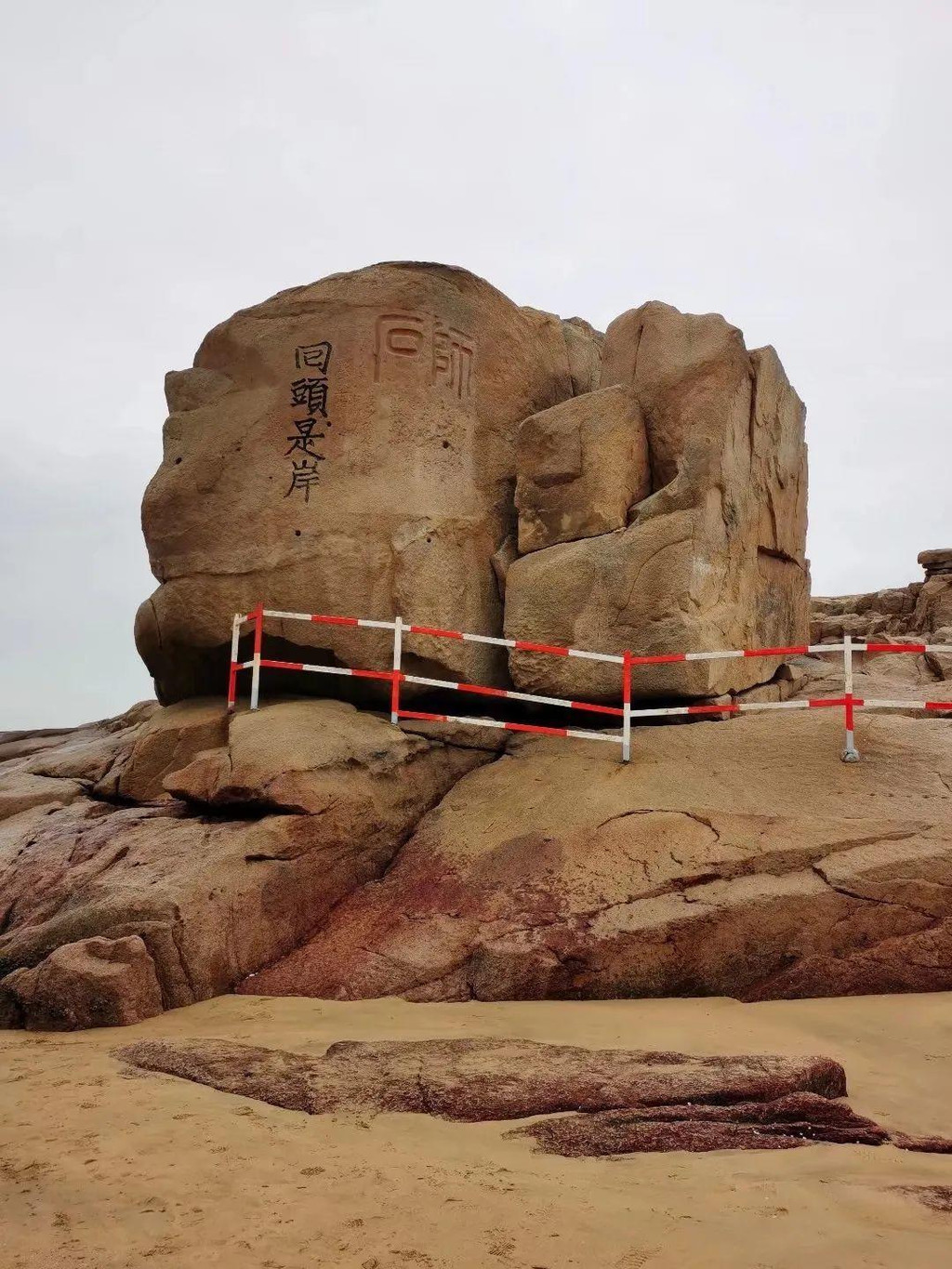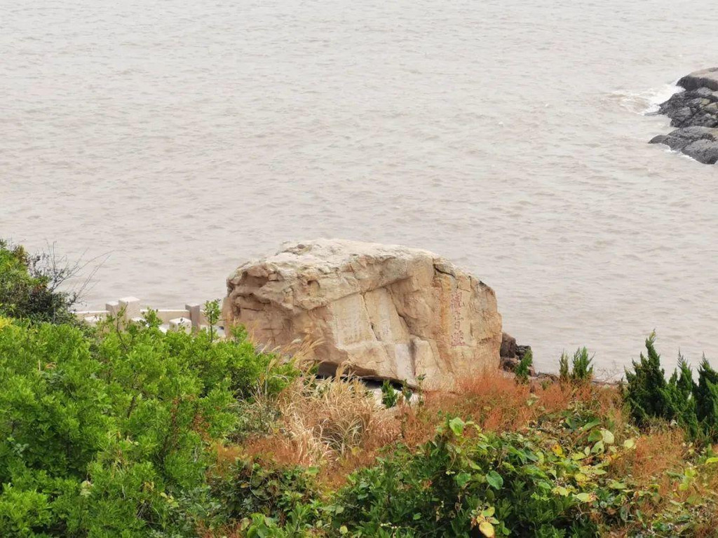 沙滩上有不少奇石,石上有隽永的佛教石刻,如下方的“石师”上刻有“回头是岸”,虽然佛教讲“苦海无涯,回头是岸”,但百步沙上前望是壮美的海景,回头是秀美的山光,处处沁人心脾。
