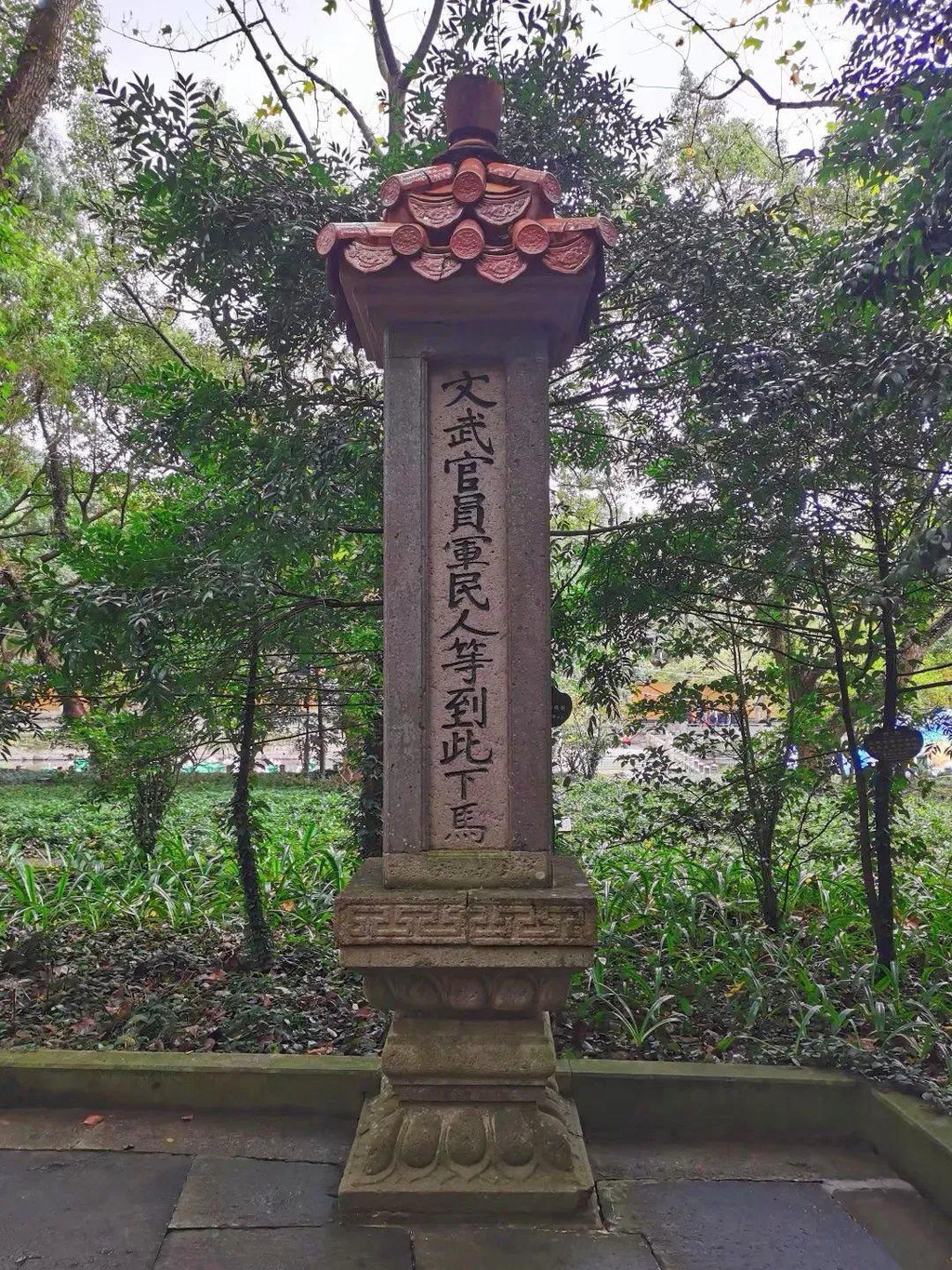 普济寺外有座“文武官员军民人等到此下马”碑,据说这是皇帝立下的圣旨,过去官吏到此,文官下轿,武官下马,以示对观音菩萨的崇敬。