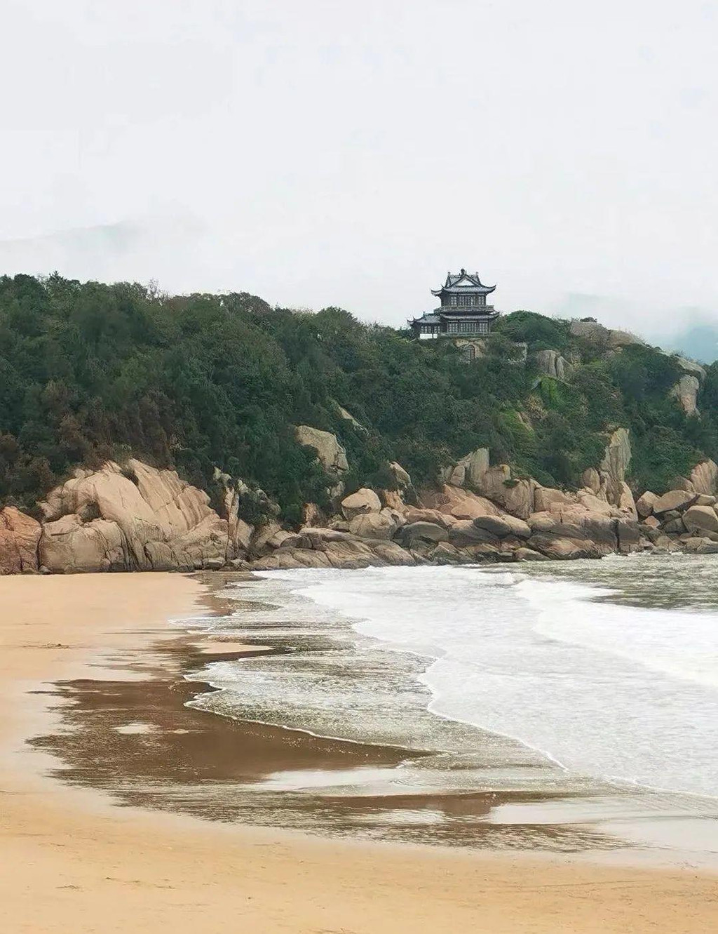 千步沙对面是悦岭禅院,园中古木参天,依山面海,环境优美,禅意十足。