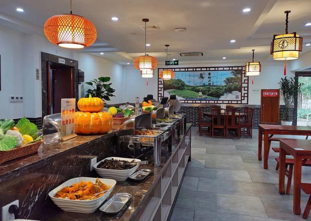 旅馆对面有一座叫“香客食堂”的素食自助餐厅,实惠又美味,汤足饭饱,去看看景色吧。