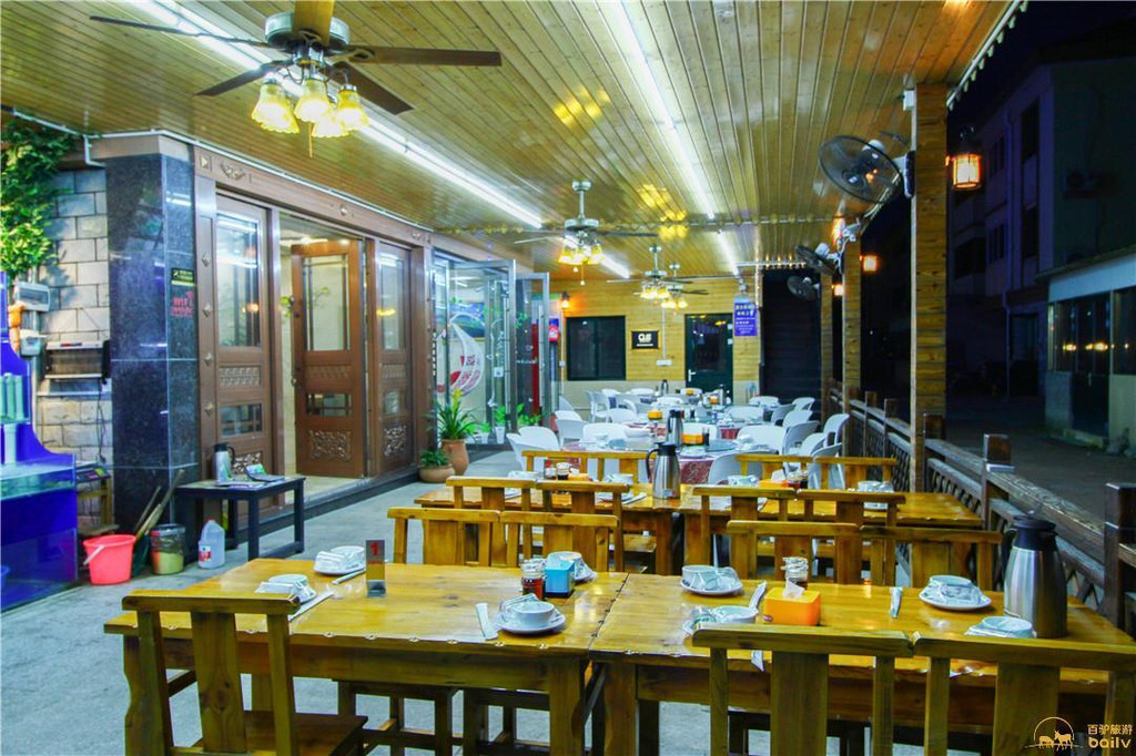 一楼是宽敞的庭院式公共餐厅,桌椅餐具干净卫生,一边用餐一边吹着微风,气氛格外美妙。