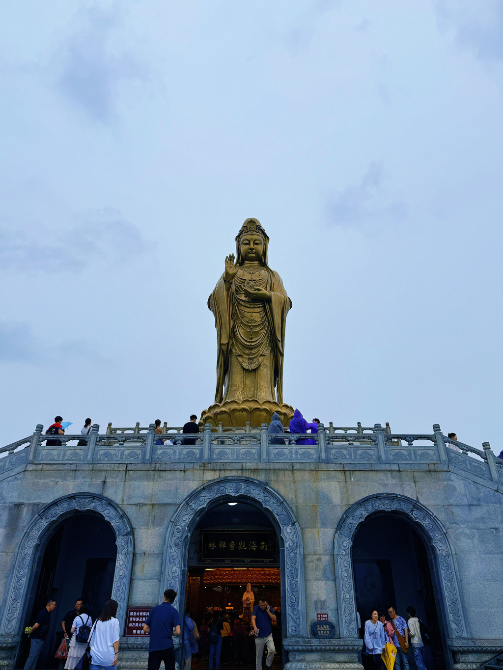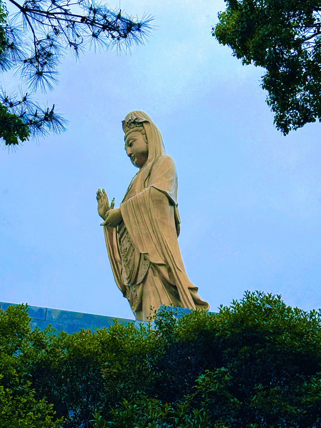普陀山南海观音像高33米,立于莲花洋畔,俯瞰众生。