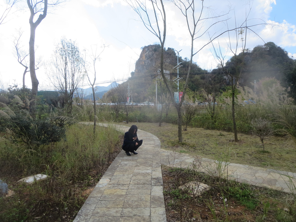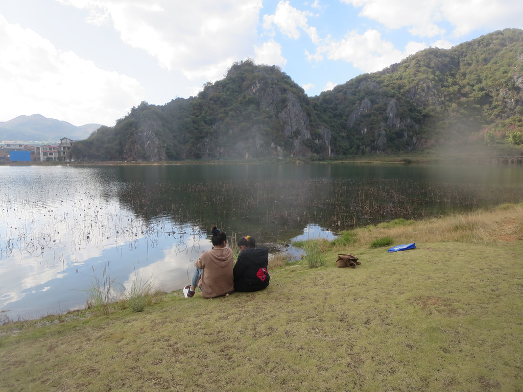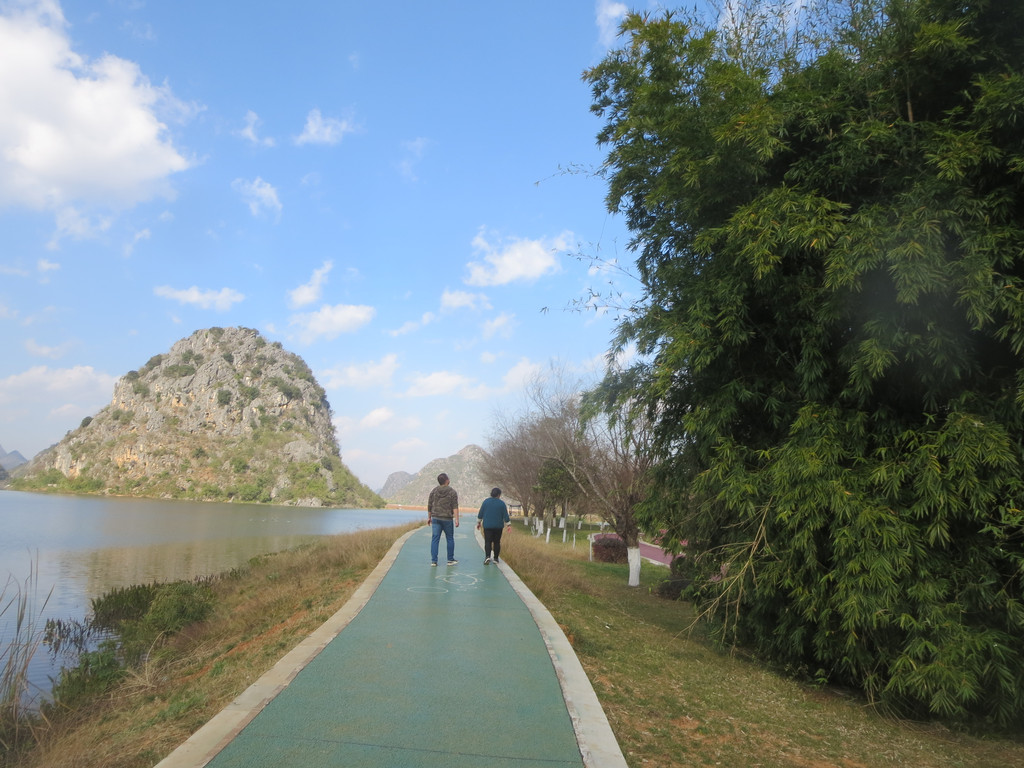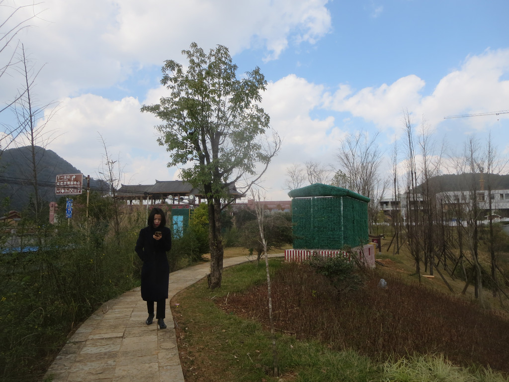 按照这里看门保安的指点,我走到对面,很容易搭上了回普者黑村的公交。