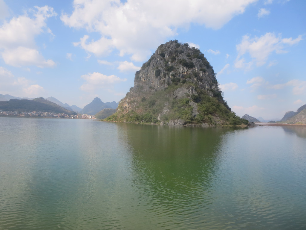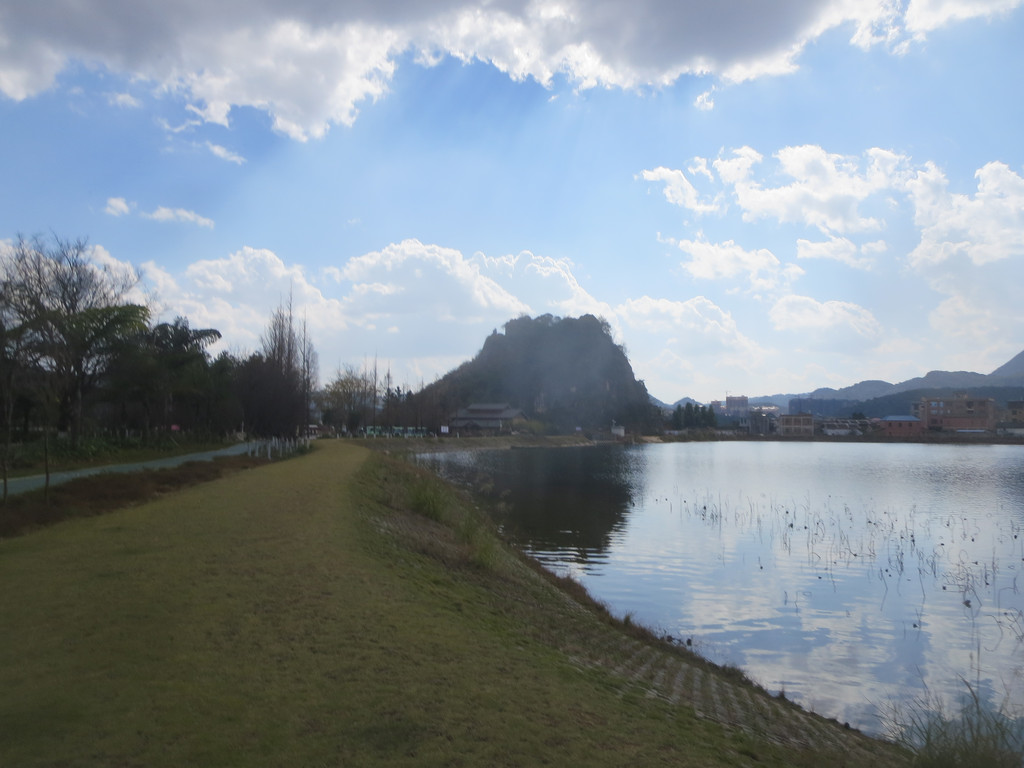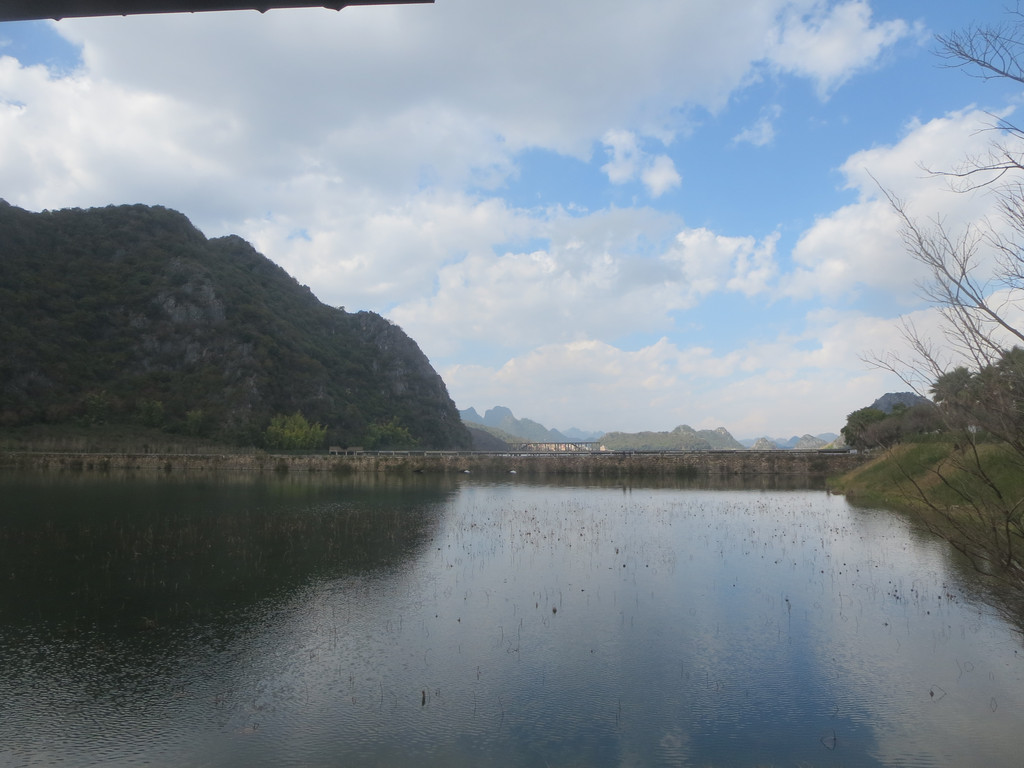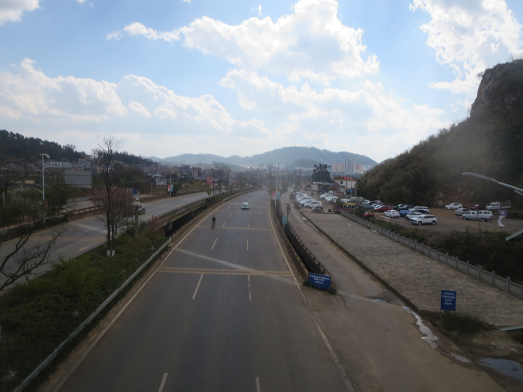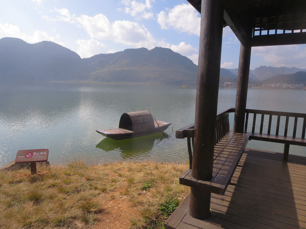 按照这里看门保安的指点,我走到对面,很容易搭上了回普者黑村的公交。