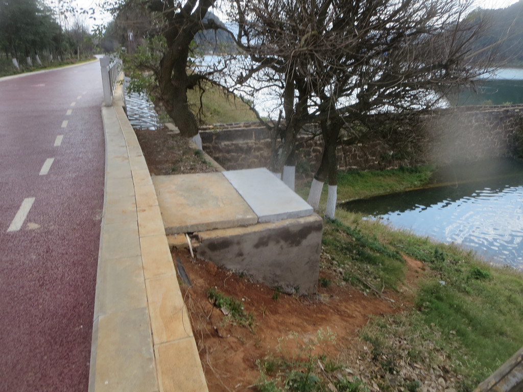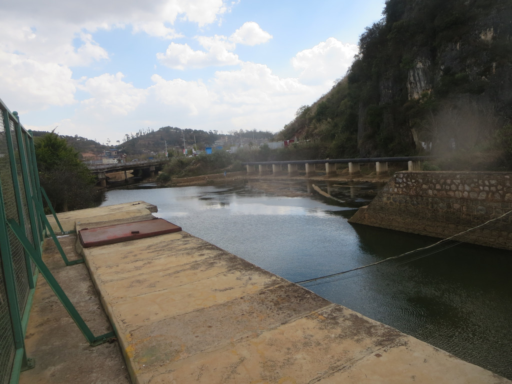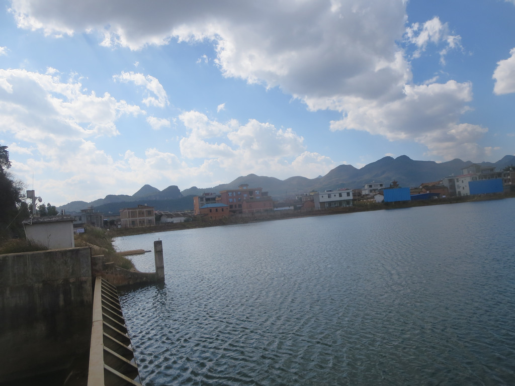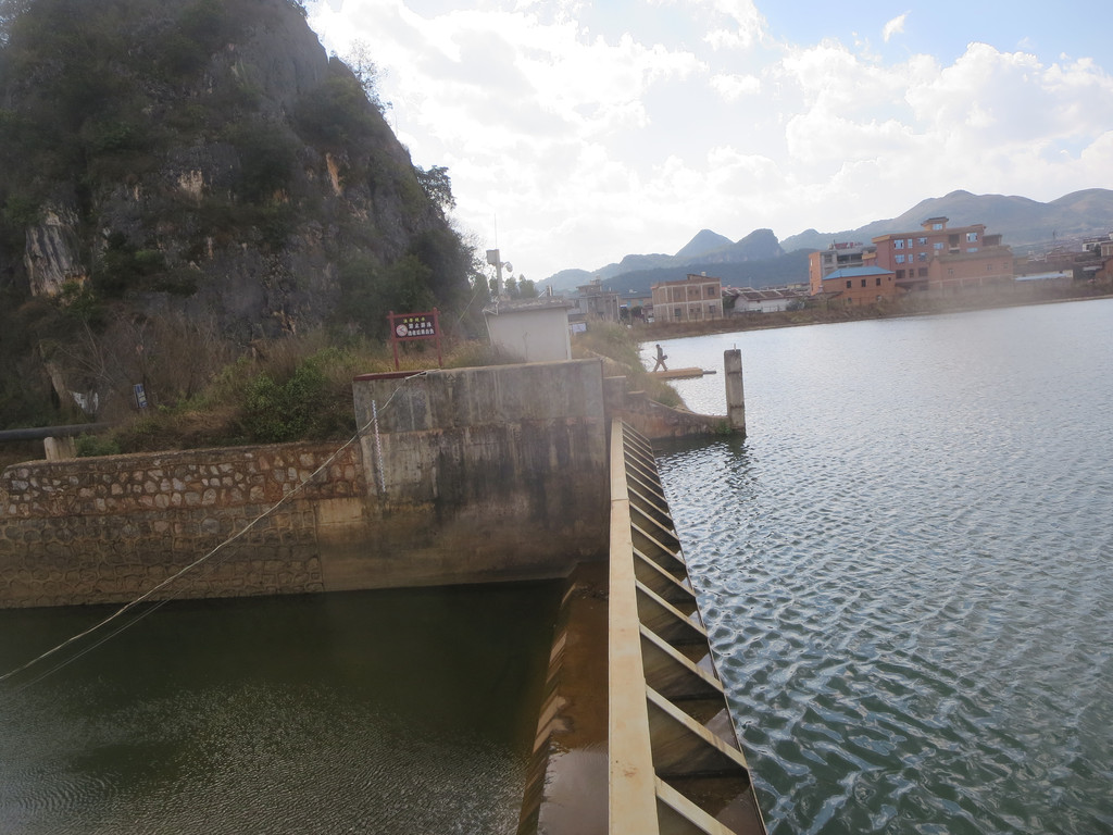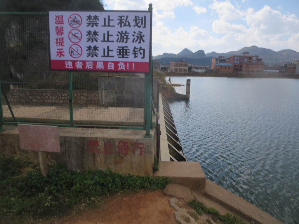 湖泊到这里是尽头,其中,对着公路这边堤坝中有个大闸看来是湖水的出口。