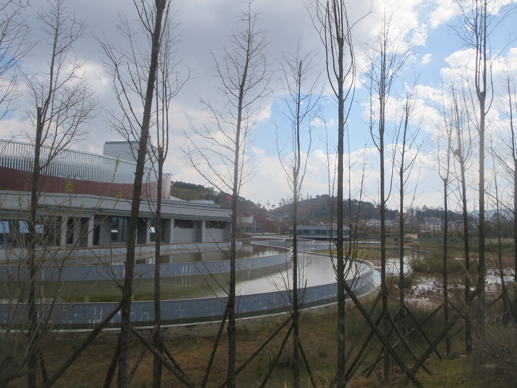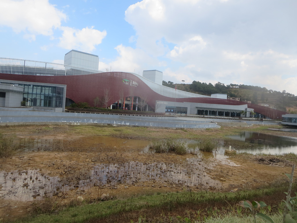 这怎么回事?走到那头一看,是一个巨大的现代化建筑,像飞碟还是别的什么,外面,有层层水景平台。