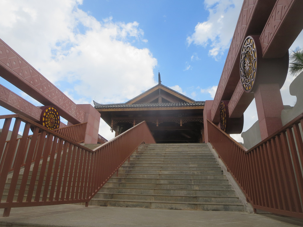 再往外,是公路,横跨公路的,是普者黑景区的标志性城楼。