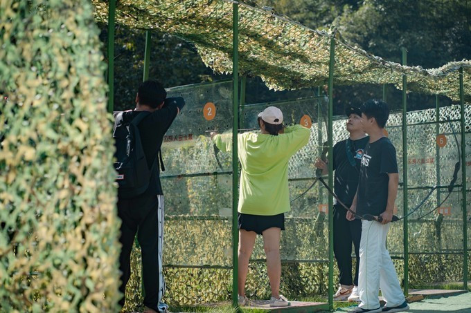 还有专门的射箭场、无动力摩天轮、多人秋千、喊泉、蹦蹦云等等欢乐项目,等着爱玩的你自己去发现。那个射箭有点意思,对于不会的人来说,也很容易上手,比箭、拉弓、射出,一口气呵成,让你瞬间有种 蒙古 哲别附身之感, 蒙古 哲别就是射箭师傅的意思,很牛的纯在。