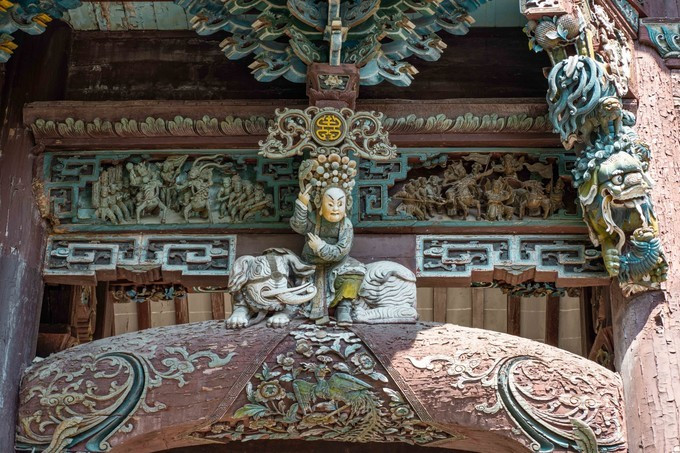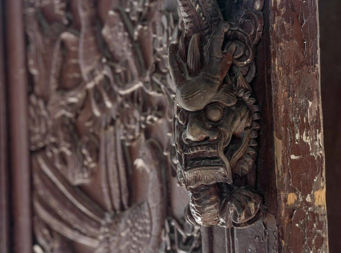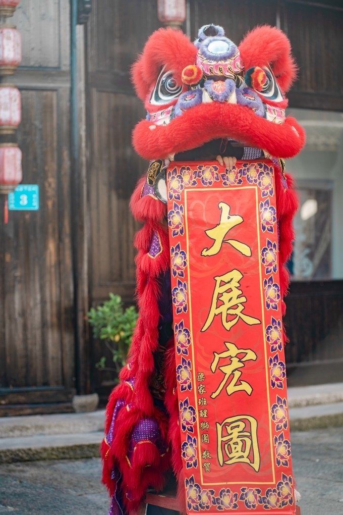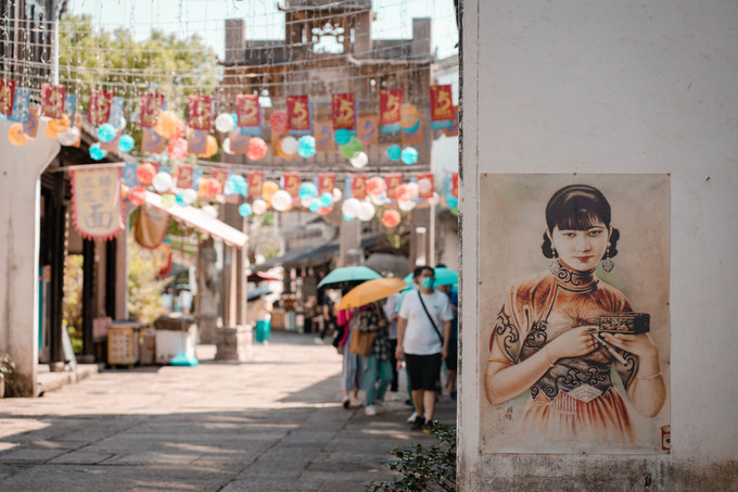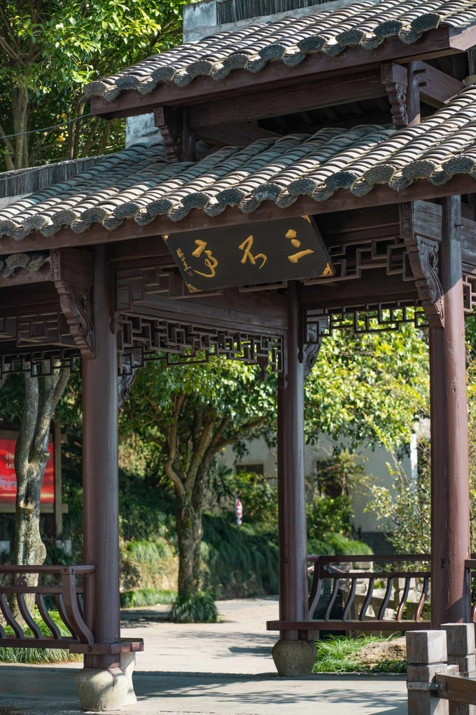 对于这里的建筑,最吸引我的就是檐角,威严耸立,一派古 徽州 建筑特色,真的不想用白墙灰瓦,高墙深巷这些快要用烂的词语来形容了,只需一眼便能明了。尽管这里的建筑都是后修建的,但我并没有厌烦,反而总能因为那些精美的雕刻或者壁画,给人一种厚重的历史文化感,一幅幅市井壁画仿佛渐渐将我带入了那个沉睡水底的古城中。路边摆放有造型不一的 狮子 ,或招手或俯下,或活泼或呆萌。