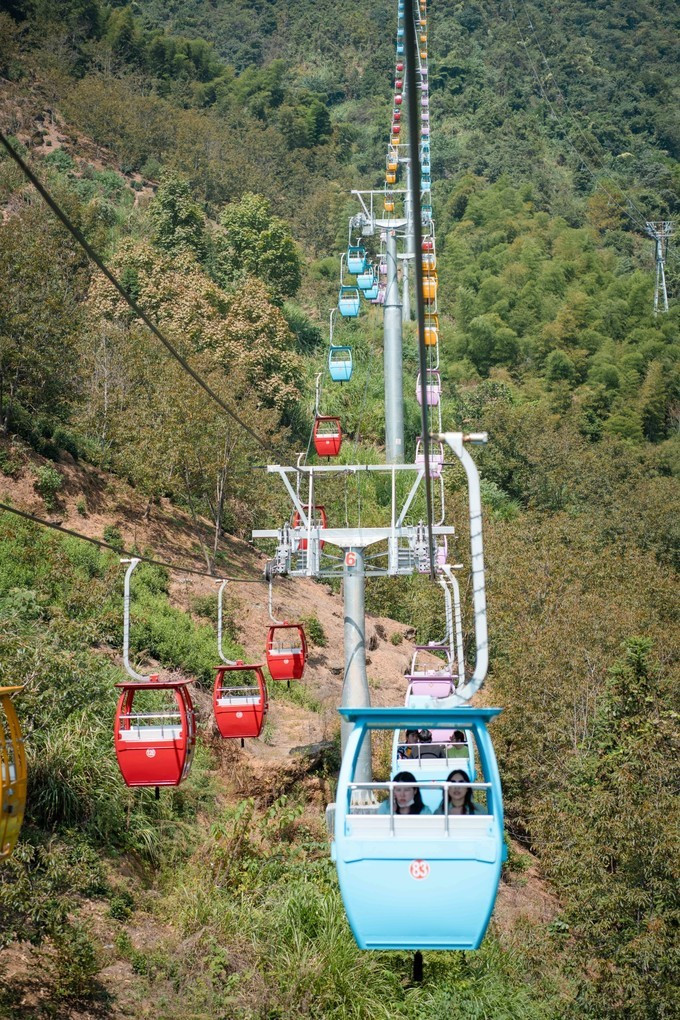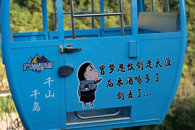 TOP3缆车飞渡:欣赏千岛湖景色的最佳途径,因为徒步是欣赏不到的。 淳安 地区距离最长的索道,1号缆车全长约2公里,整个运行时间约30分钟;2号缆车全长约1公里,运行时间为10分钟。每个车厢最大可乘载4人,车厢四周未安装玻璃,游客可360度欣赏球山甚至千岛湖的美景,而且车厢外面的字体和图案特别有意思,很多字看到就要笑,你所有的不开心就烟消云散了,特别逗!