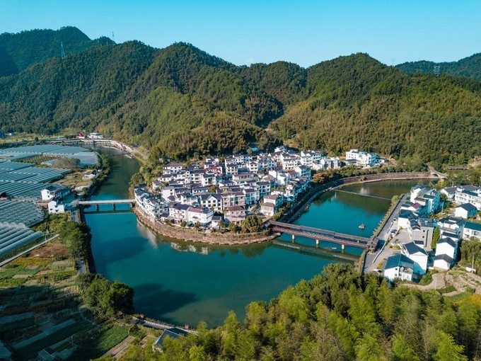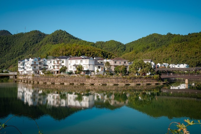 我们的导游小姐姐告诉我们,下姜村以前非常贫穷,如今,这个当年远近闻名的贫困村打了个翻身仗,成为“绿富美”的村庄。从山坞变身产业基地,由贫困村变为美丽乡村,生动演绎了“绿水青山就是金山 银山 ”的实践篇章,更为新时代农村如何与绿水青山和谐共荣、农民如何富有 安康 树起了现实标杆。我们看到的下姜村真是很美丽。清一色的白墙黑瓦,四周都是郁郁葱葱的一片绿色,村里还有清澈河流。