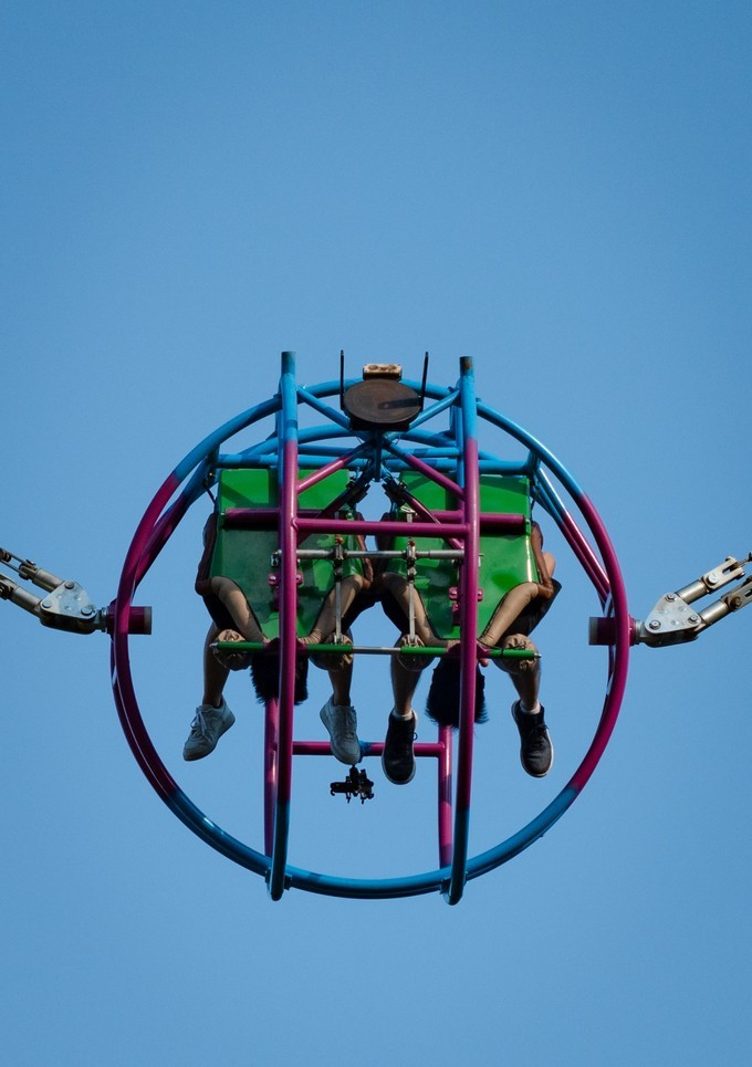 而新引入的项目火箭蹦极,也是特别吸引人的项目,能坐两个人,飞速上升,真的如火箭般的上升速度,再空中来个翻转,接着降下来,享受失重的推背感,只听到空中一阵惊呼狂呼大吼,也只见两个人倒立在空中,头发和脚在同一个放心,如此诡异的造型,让我们下面的看官也是一阵惊呼。