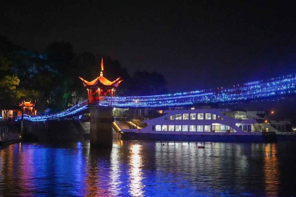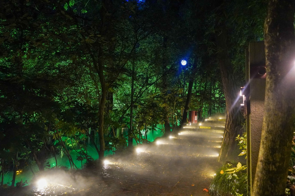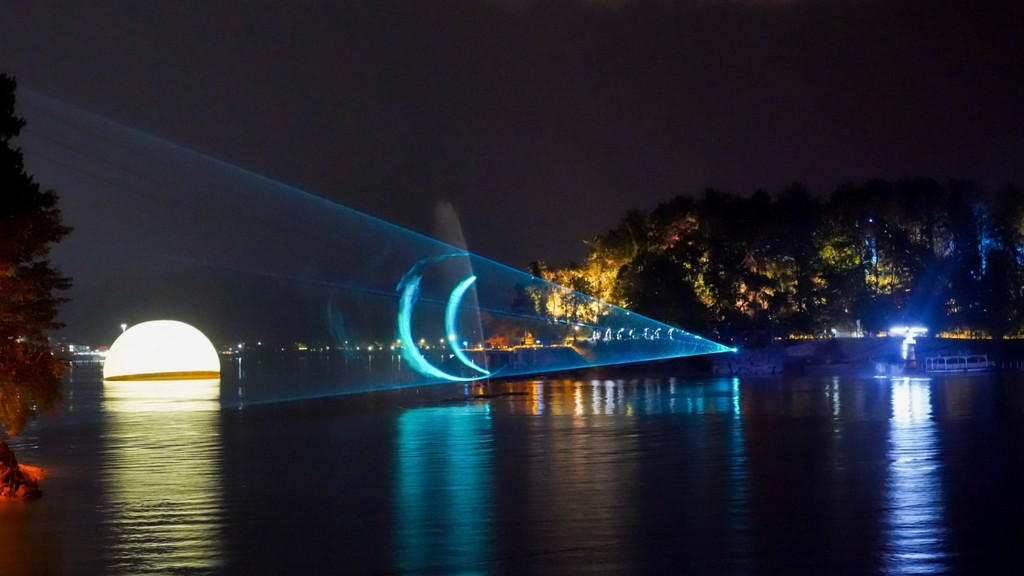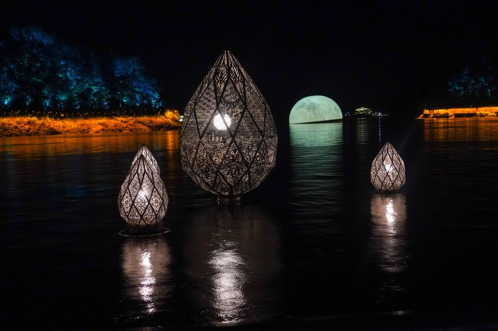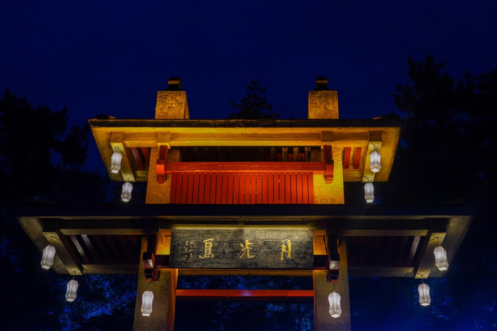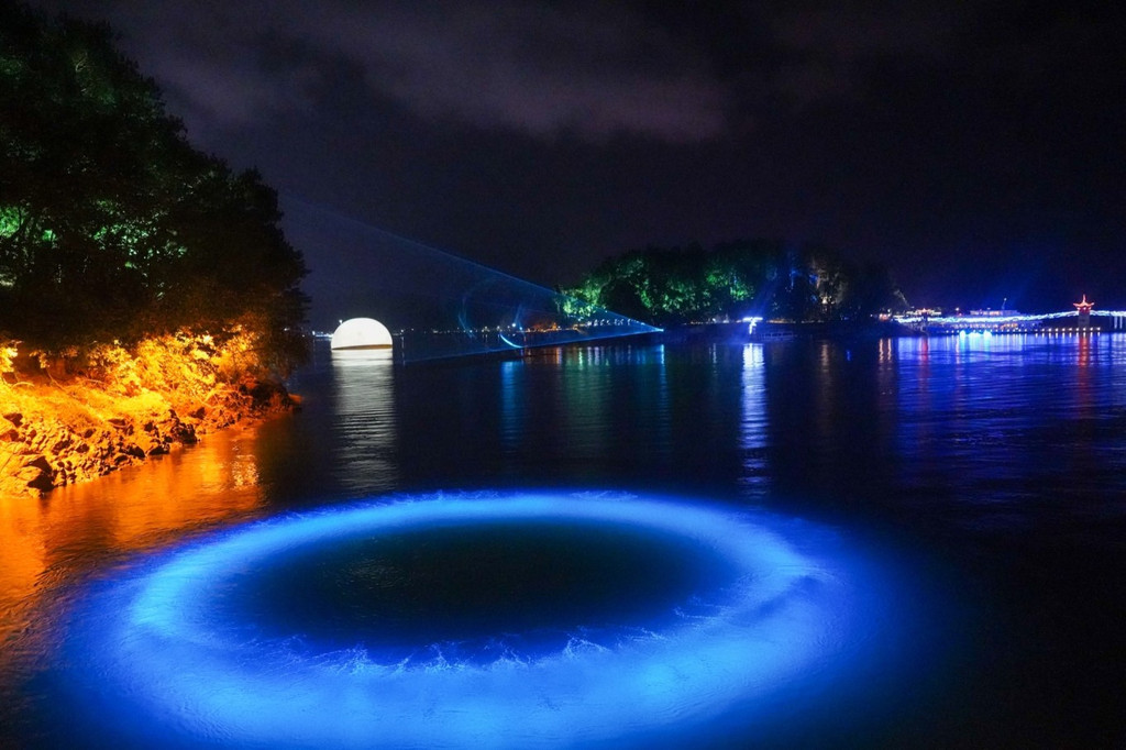 不同于白天的游湖,月光之恋主打灯光秀。乘着月色,来月光岛,情忽而生起,流转于光影 万象 之中。月色融融,星光烁烁,寻觅着“愿我如星君如月,夜夜流光相皎洁。”的美好遐想之境,此刻愿化作星月,相交相融。