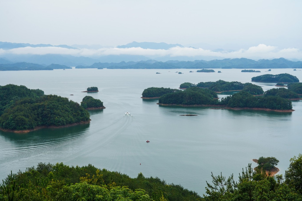 “不上梅蜂观群岛,不识干岛真面目”,或徒步或乘坐缆车登上梅峰观景台,可纵览 300 余座大小岛,是目前千岛湖登高揽胜的最佳处。