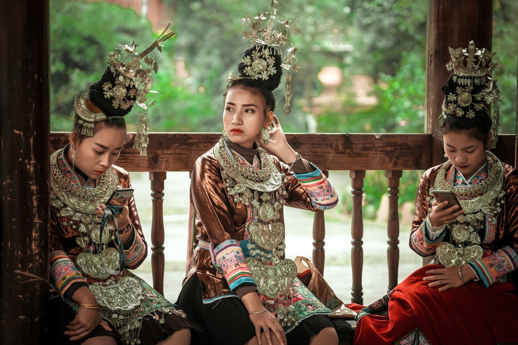刚进寨子不久,就在入口处的风雨桥遇到了盛装打扮,准备要唱大歌的侗族姑娘们,笑容灿烂,明艳动人,而她们身上穿的侗锦,戴的银饰,总是能衬托出她们最美的样子。