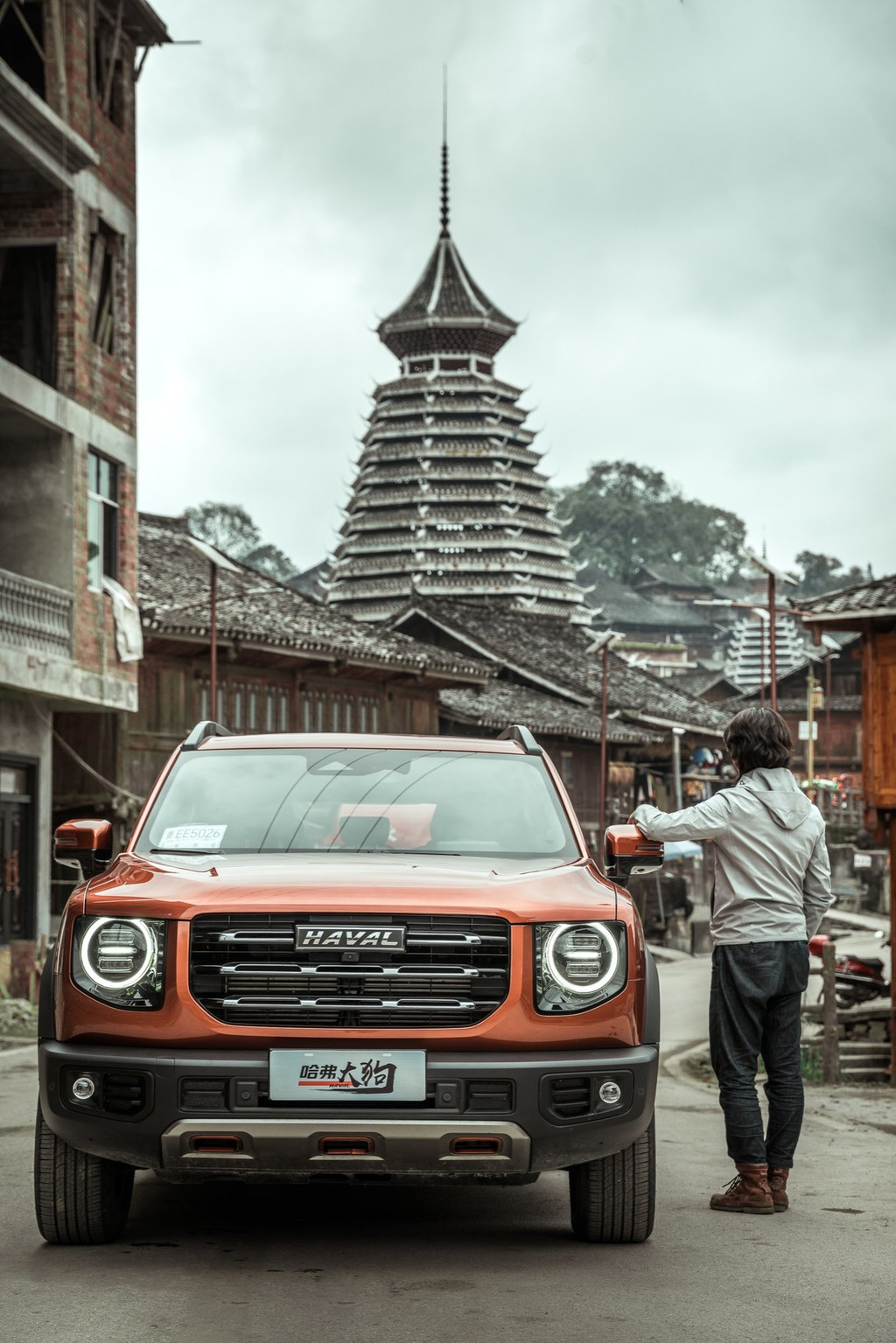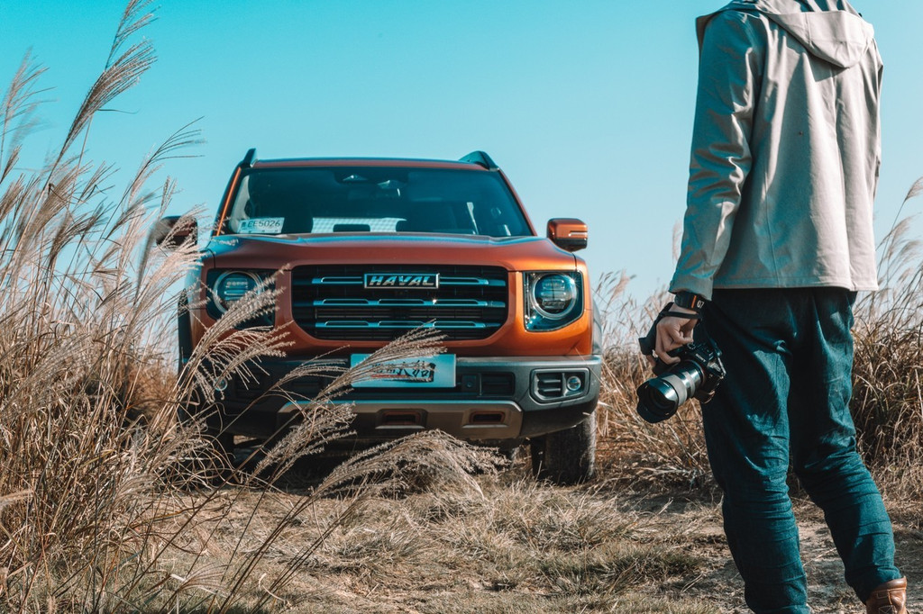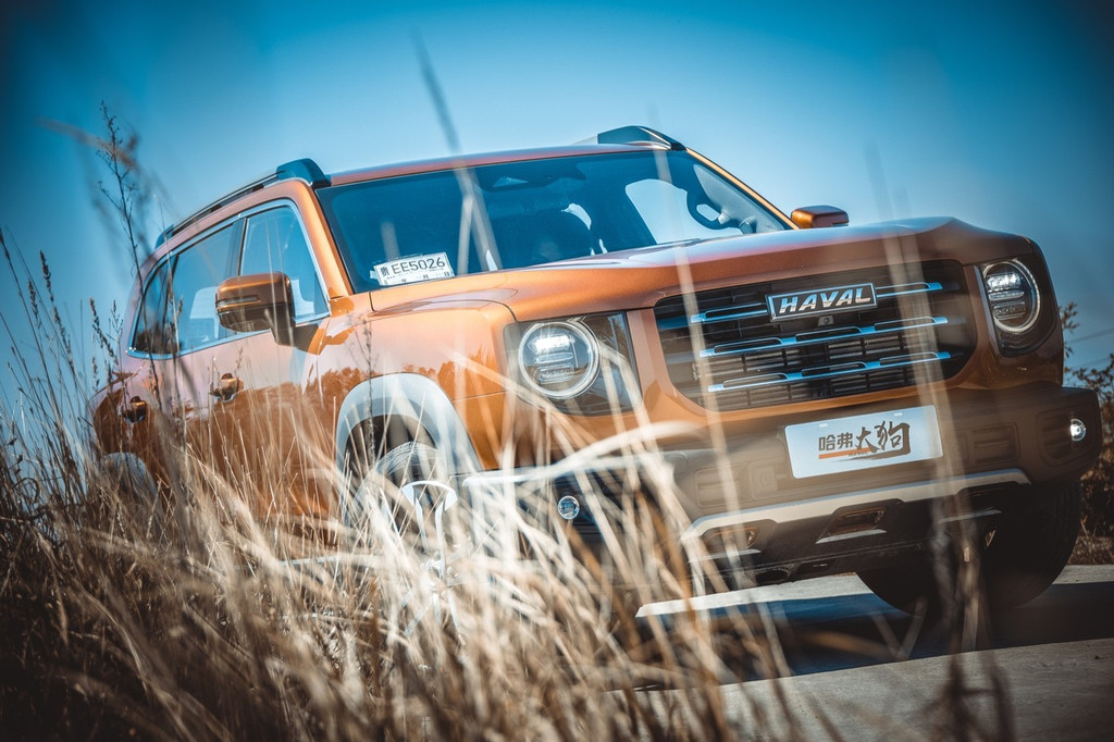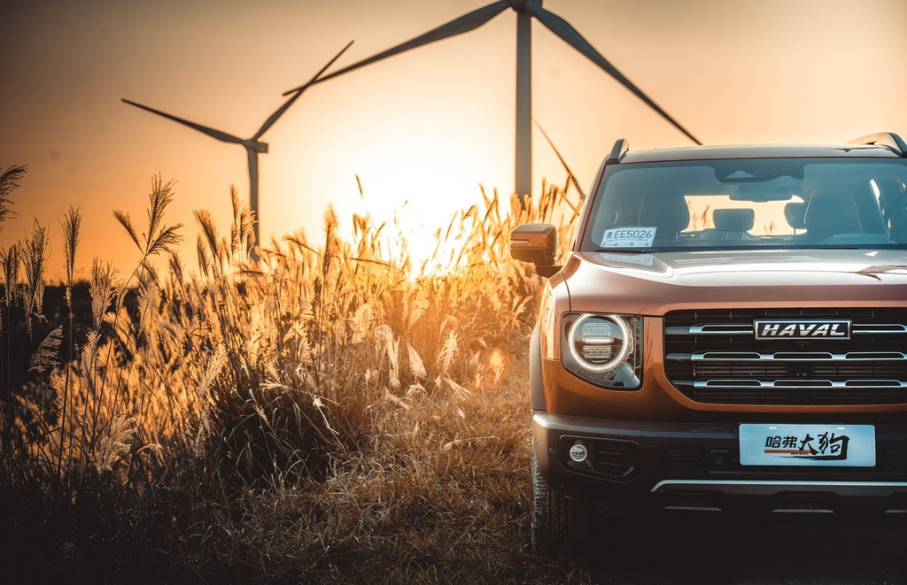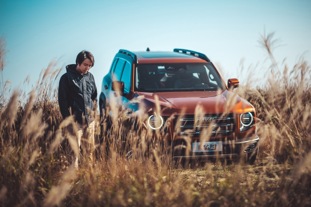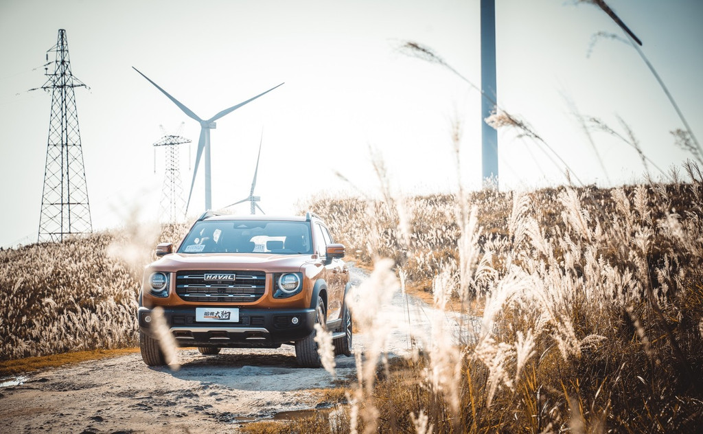 微风摇曳着芦苇,橙色的大狗在日落的光辉下显得更有立体感了,复古的设计,线条非常硬派,加上一个外观粗犷的长方形进气格栅和银色挡泥板的前包围,越野气质彰显无遗,这是我们年轻人表达态度的一款车,我们不止需要循规蹈矩的上下班通勤,更需要大狗来承载起我们的远方和梦想。
